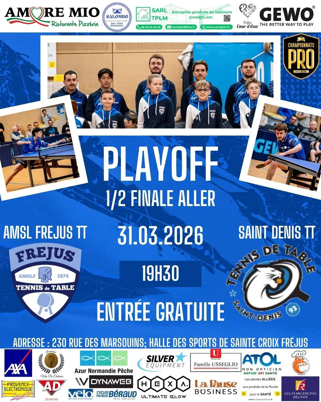 Contactez 1/2 finale Pro B Tennis de Table - AMSL Fréjus / Saint-Denis 93