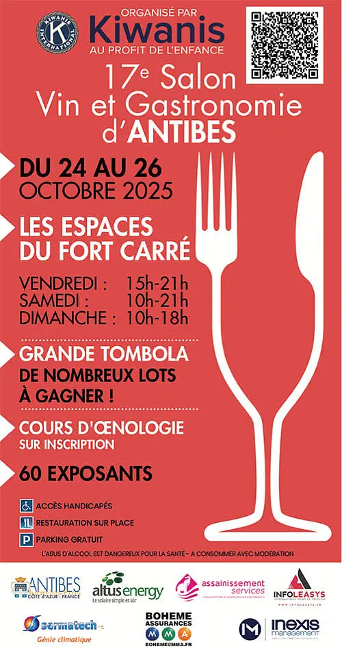 Le Kiwanis International d'Antibes Juan-les-Pins accueille les gourmets du 24 au 26 octobre pour son 17e Salon vin et gastronomie d'Antibes aux Espaces du Fort Carré.
