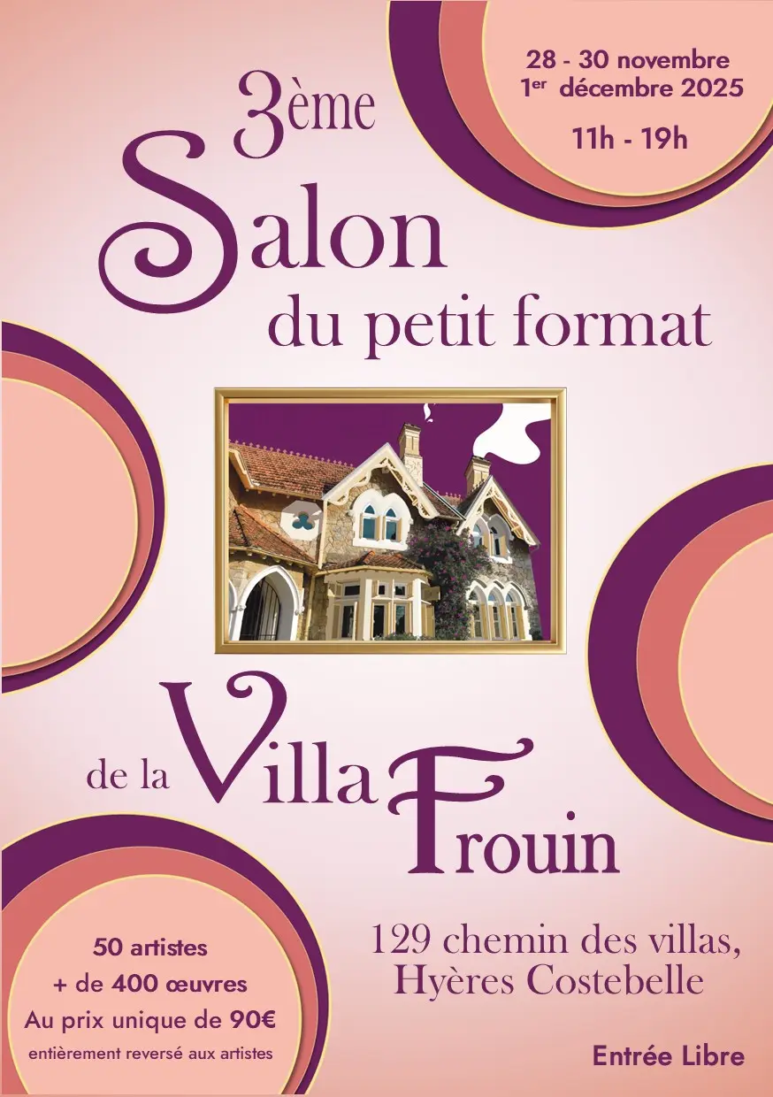 3ᵉ Salon du Petit Format à la Villa Frouin (Hyères) • Plus de 50 artistes • Œuvres à 90 € • Entrée libre • 28 nov-1ᵉʳ déc. 2025 • Format max : 30×30 cm • 100 % reversé aux artistes