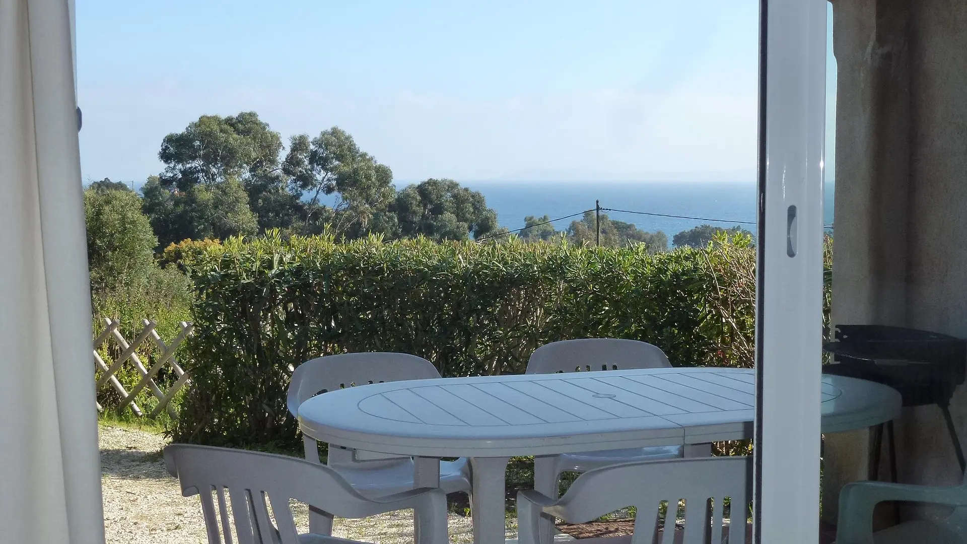 Une charmante résidence de vacances, au calme, avec vue sur la mer. appartement en rez de jardin, une chambre avec lit de 140, un coin cabine avec 2 lits superposés de 90, cuisine bar, LL, Lv, Tv, four, plaques électriques, canapé lit de 140 dans le séjour, terrasse couverte de 9 m2 sur jardin privatif, parking privatif,