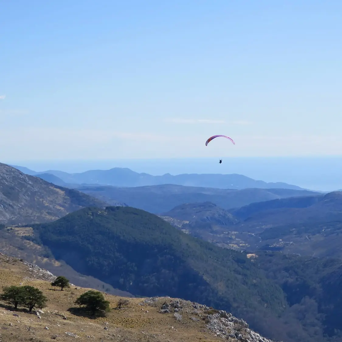 Au cœur du parc naturel régional des Préalpes d’azur, avec pour fond les majestueuses montagnes du Mercantour et une vue imprenable sur la Méditerranée, les moniteurs Ailéments vous accompagnent pour un baptême parapente biplace inoubliable.