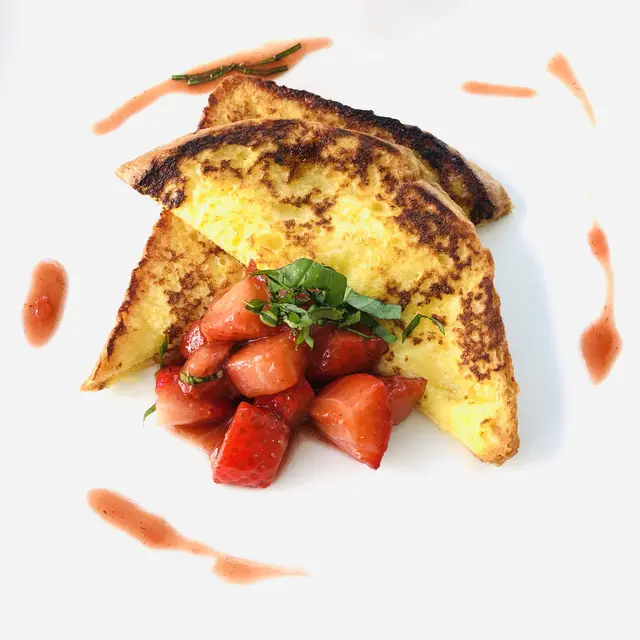 Contactez Atelier gastronomique - Clafoutis petits pois feta pistou et Brioche perdue aux fraises poêlées