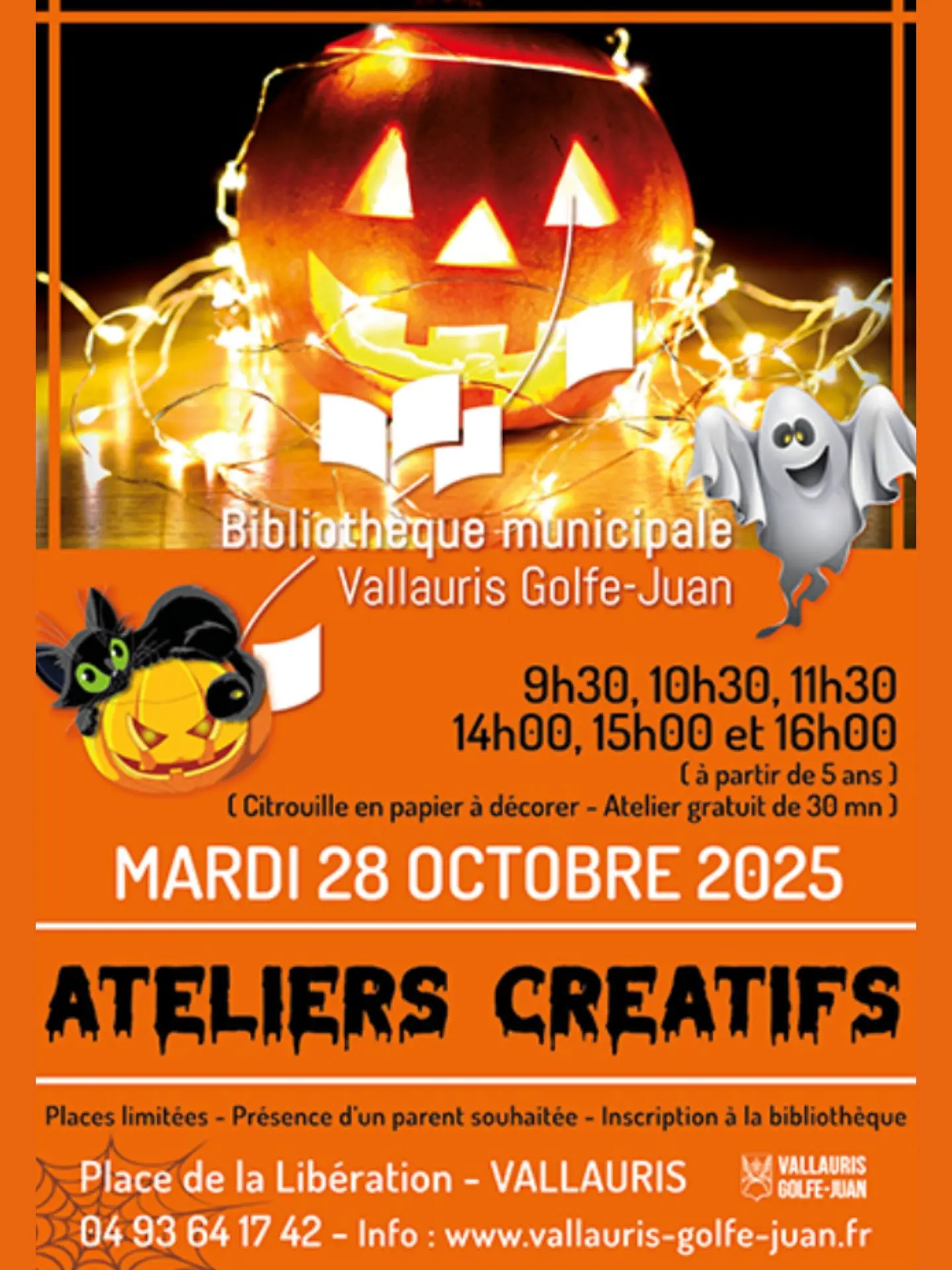 Ateliers créatifs gratuits sur le thème d'Halloween. Décoration de citrouille en papier avec des gommettes. A partir de 5 ans, accompagné d'un adulte.