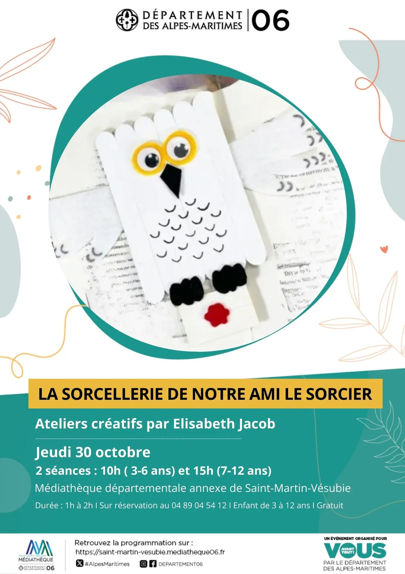 La médiathèque propose des ateliers d’art créatif pour les enfants de 3 à 6 ans (accompagnés d’un adulte) et pour les enfants de 7 à 12 ans. Proposés par Elisabeth Jacob.