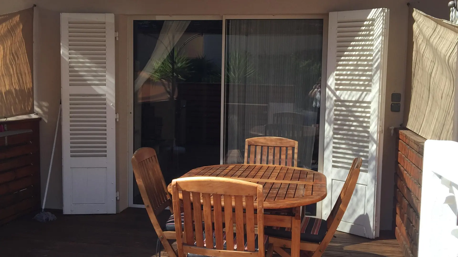 A 20 mètres de la plage d'Aiguebelle, le côte pratique est que vous pouvez aller à la plage le matin , remontez faire un barbecue sur la terrasse, laissez les enfants faire la sieste bien au frais dans la chambre pendant que vous profitez de bronzer sur la terrasse