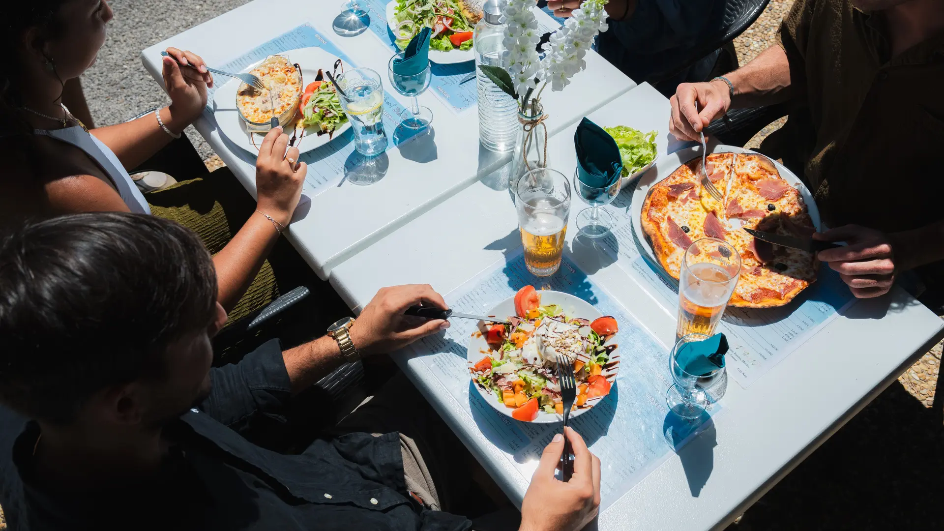 Sur le camping, Rémi et son équipe vous accueille au restaurant. Venez éveiller vos papilles grâce à la cuisine traditionnelle fraîche et goûteuse du chef ! En ce lieu, l’ombrage, l’authenticité, la convivialité et la détente sont à l’honneur. Le restaurant du camping l’Ile d’or, niché sous les pins, vous offre un cadre idéal pour déguster des mets de qualité ou pour siroter un petit apéro en famille ou entre amis. Lors de la saison, des soirées à thèmes sont proposées et ouvertes à tous : des soirées avec Dj, des soirées paëlla, des soirées corses… Pour le bonheur de tous !