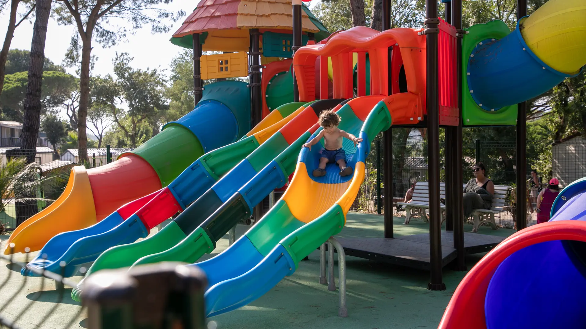 Nous proposons tout un panel de locatifs pour des vacances ensoleillées : mobil homes, tentes lodge, chalets. Notre espace aquatique de 650m2 est le pole central du camping et propose : Toboggan, pentaglisses et jeux gonflables.