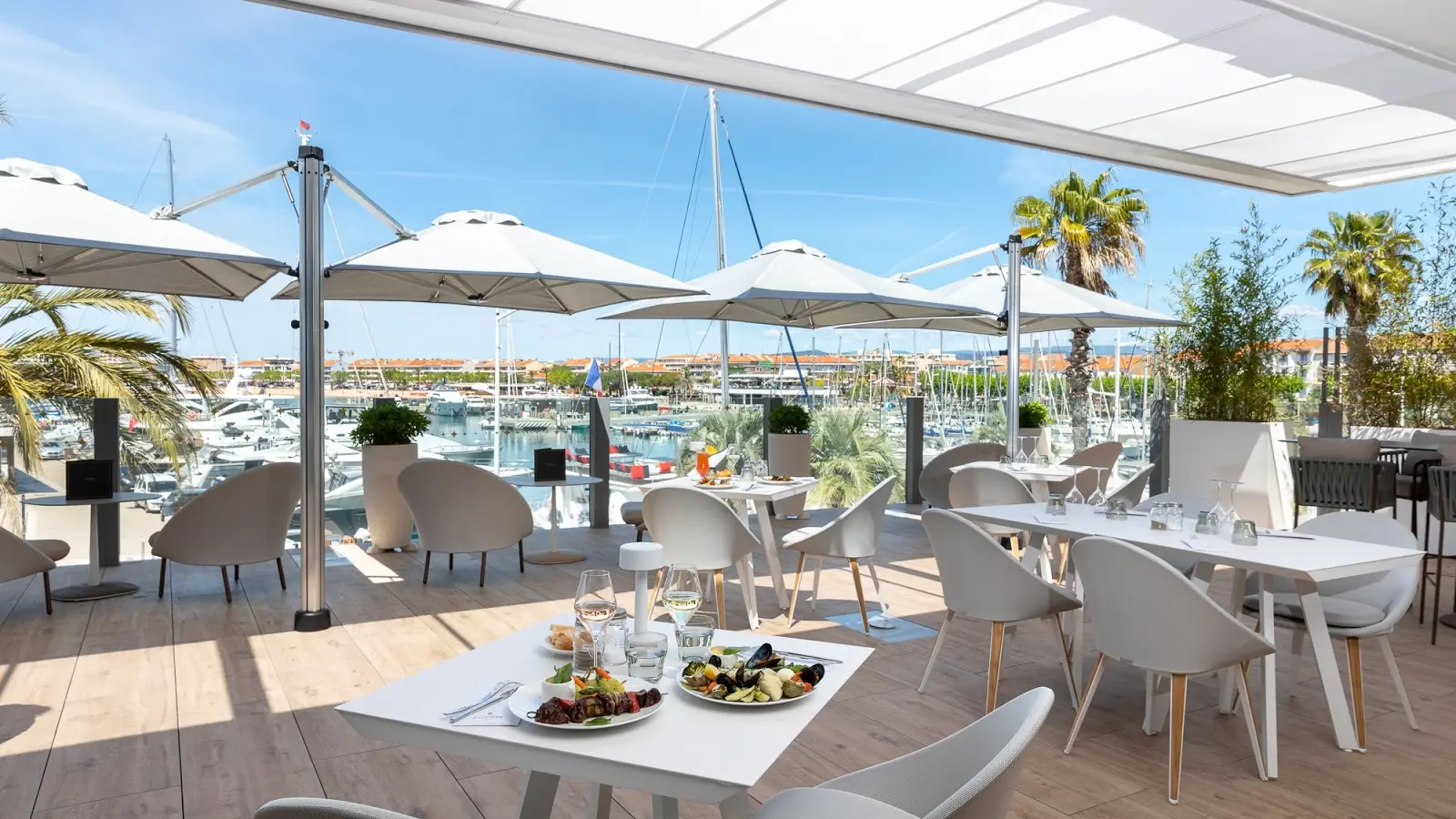 - Espace restauration intérieur et véranda : Au Café Barrière, venez profiter d'une vue imprenable sur le port et découvrez nos buffets gourmands haut en couleurs et à volonté !