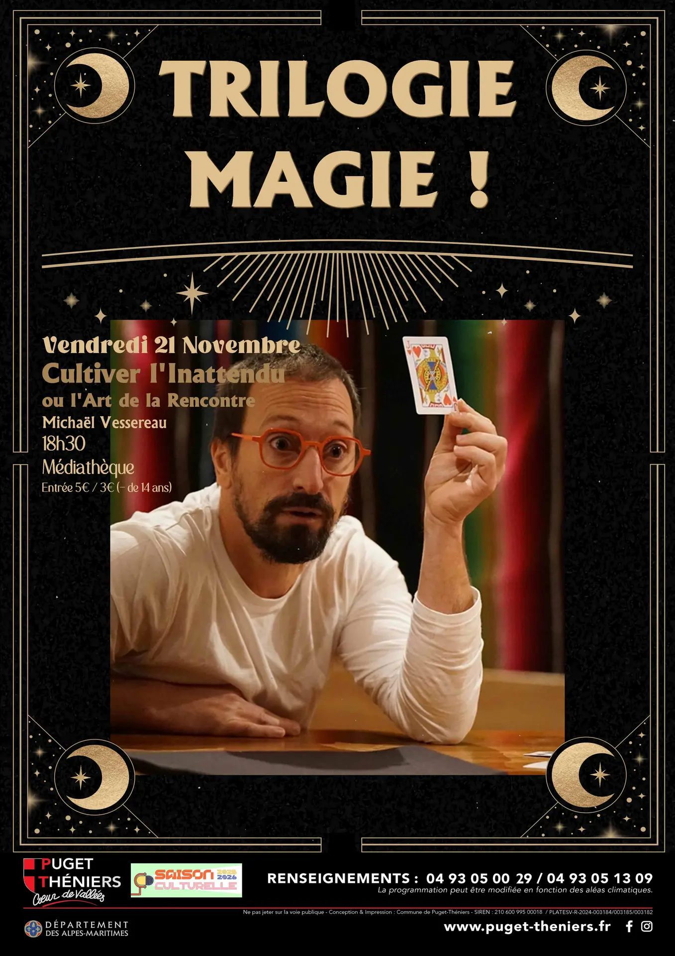 Michaël Vessereau engage le public dans une réflexion collective et pataphysique. "Cultiver l'inattendu ou l'art de la rencontre" c'est accepter de se laisser surprendre par ce que l'on ne comprend pas, par l'autre et par soi-même. C'est aussi savourer le plaisir de se retrouver simplement, autour d'un jeu de cartes... et de quelques miracles !