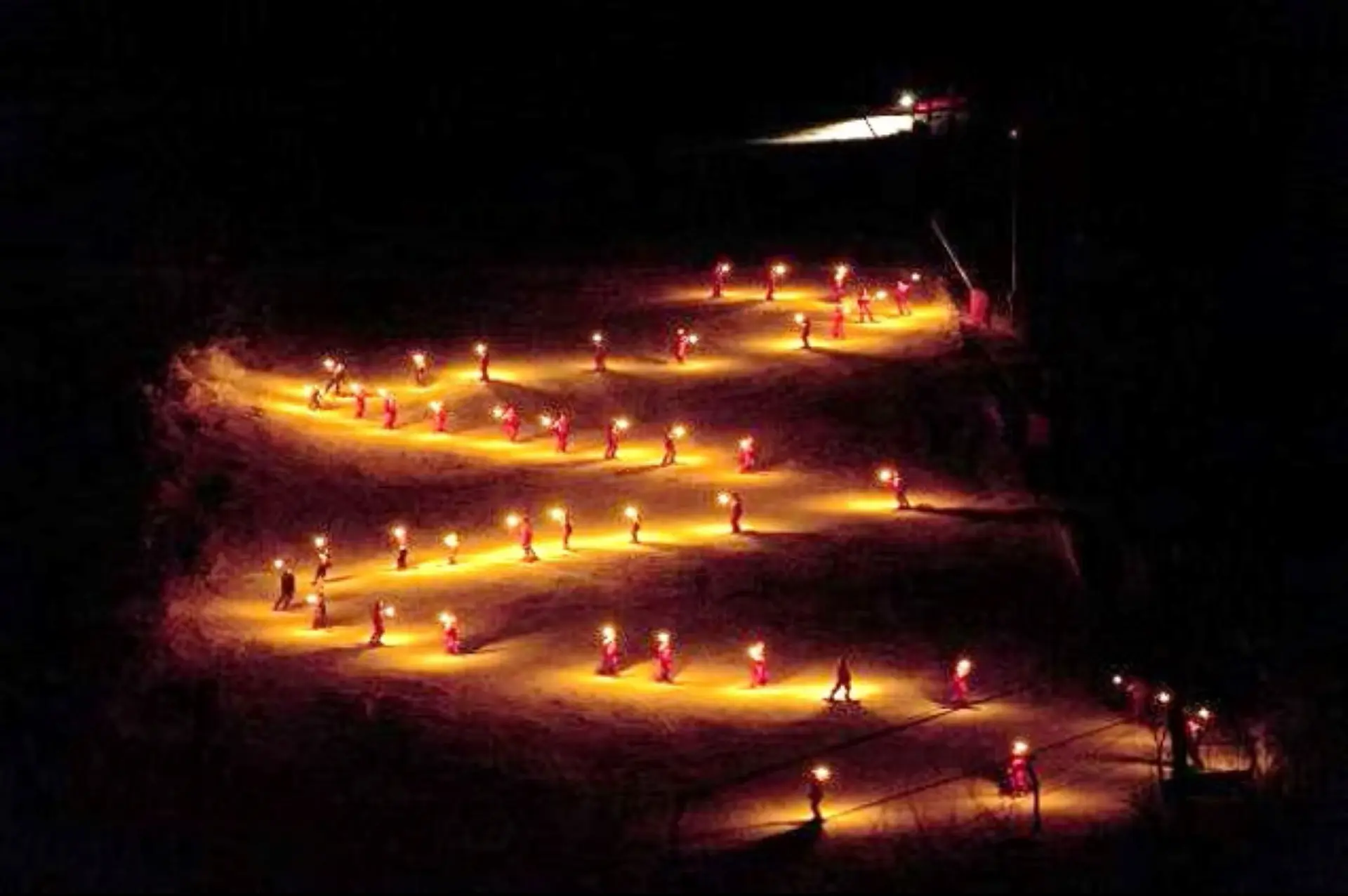 La descente aux flambeaux, une tradition magique portée par la lueur des torches des moniteurs de l’ESF.