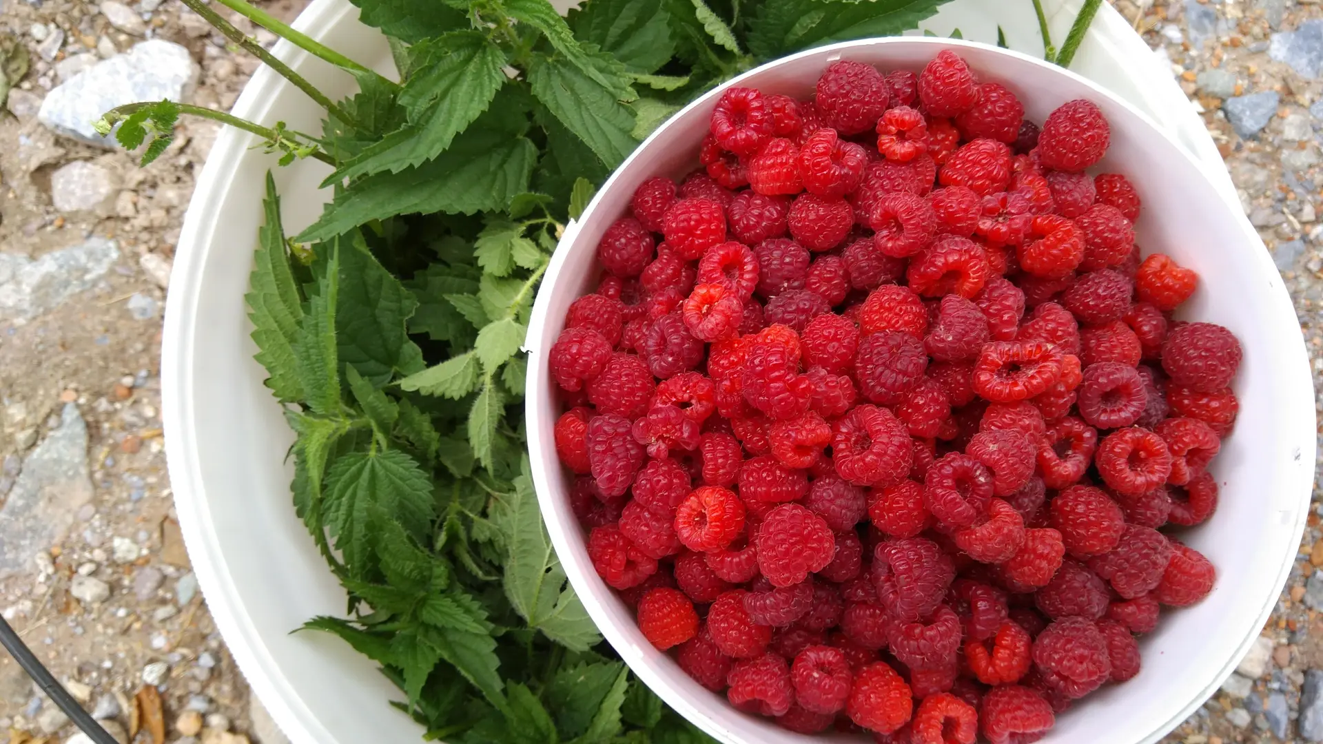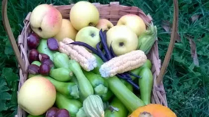 Fruits et légumes produits sur l'exploitation ou en cueillette sauvage en agriculture biologique.