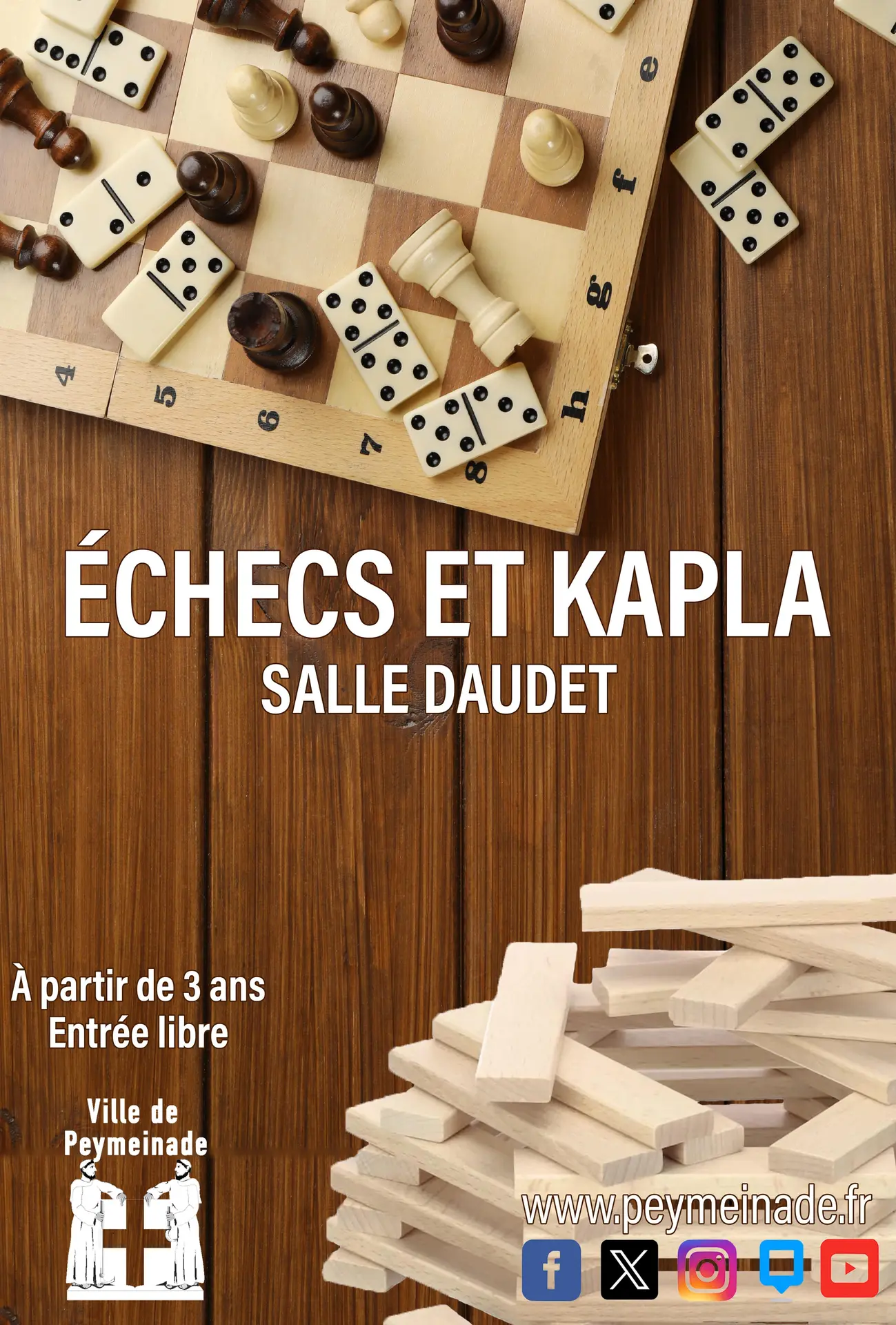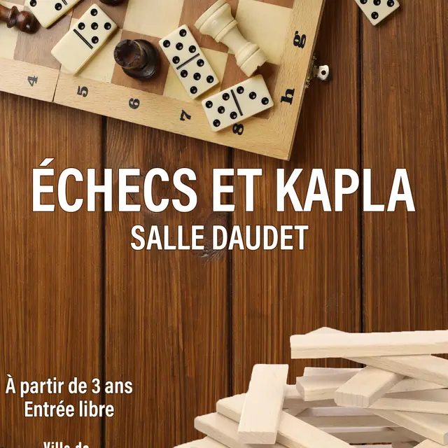 Un tournoi d’échecs open sera organisé à l’occasion de l’événement Échecs et Kapla. Il est ouvert à tous, quel que soit le niveau. Un espace dédié au jeu de construction KAPLA sera accessible aux enfants et aux familles.