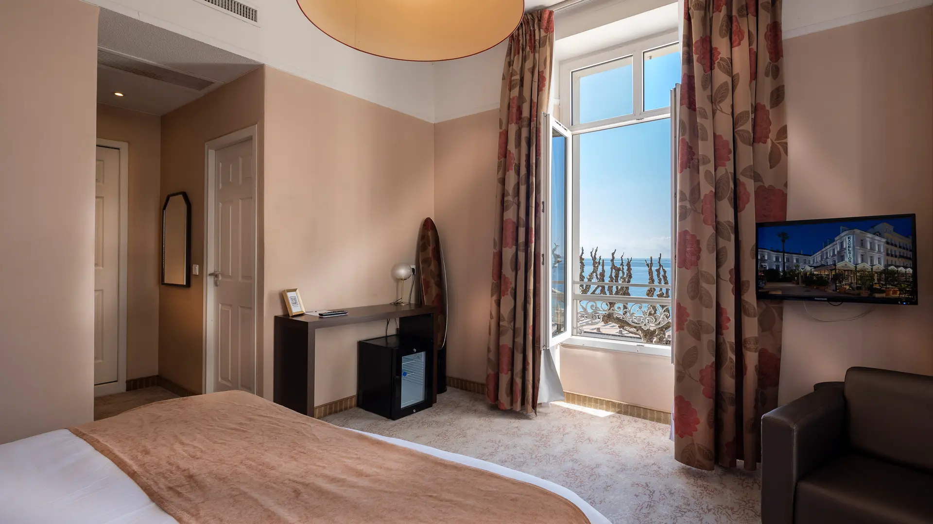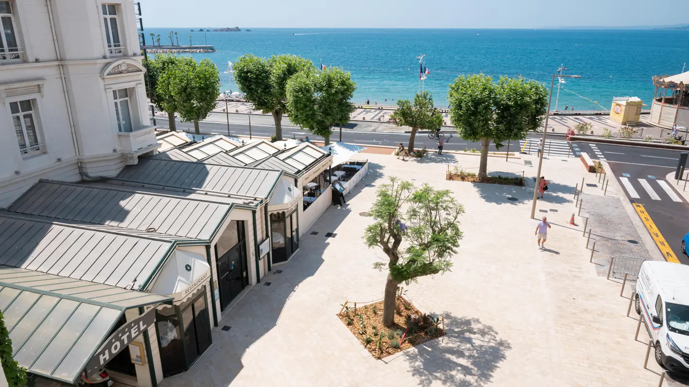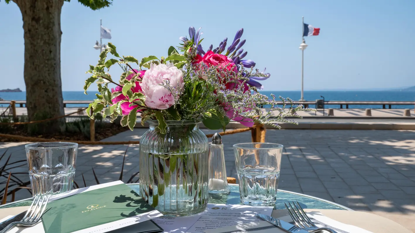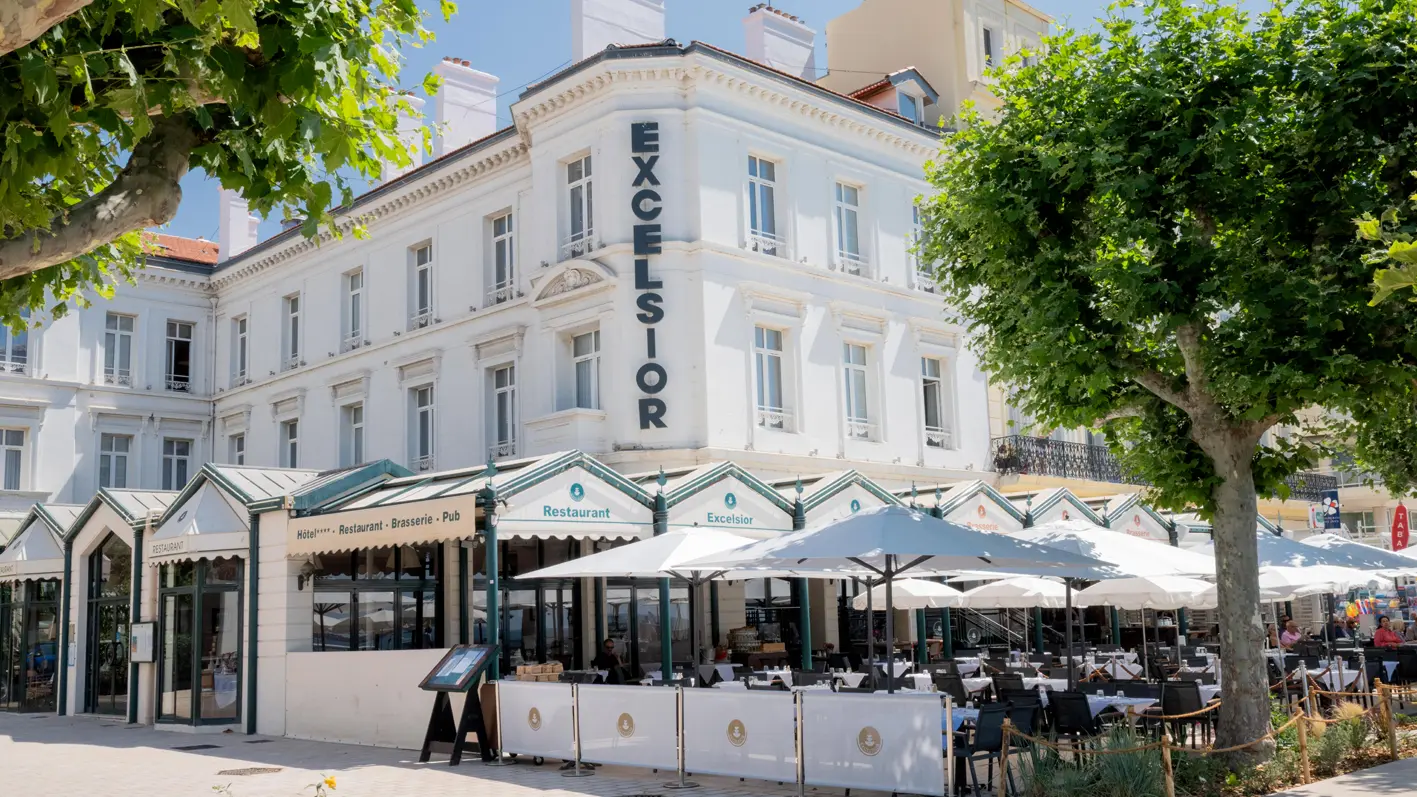 Respirez la mer... Un air doucement iodé arrive du large, la mer scintille sous vos yeux... Vous êtes à l’Excelsior. Une escale marine et raffinée au cœur de Saint-Raphaël. Un séjour tourné vers le large et les plaisirs nautiques, mais aussi tous les bonheurs offerts par l’Estérel, ses criques sauvages et ses sentiers. Une façade blanche baignée de lumière, du bois clair, des attentions partout présentes… Bienvenue à l’Excelsior pour un séjour relaxant. En famille, pour le business, ou tout simplement pour ne rien faire... L’Excelsior est doué pour le bonheur. Vous êtes chez vous... Un mobilier bien dessiné, de belles matières et des couleurs douces, tous les éléments nécessaires à votre confort... Charme & confort. Toutes nos chambres sont non fumeur, climatisées. Elles possèdent toutes une décoration où l'élégance des lignes actuelles se conjugue en harmonie avec l'esprit des lieux. Pour 18 d'entre elles la vue est imprenable sur mer ! Equipement Climatisation réversible, TV écran plat, téléphone direct, connexion internet haut débit WIFI gratuit dans les chambres et les parties communes, mini bar, coffre fort individuel, sèche-cheveux. Chambres : 18 chambres vue mer dont 8 "Prestige" (pleine vue mer) et 10 "Standard" (vue mer latérale) 11 chambres "Côté Ville", certaines donnant sur la Basilique, 1 chambre "Famille" communicante côté ville (4 personnes), 2 chambres triples en duplex, Côté Ville (3 personnes), Pour vos dîners et déjeuners, vous avez le choix entre la salle élégante et climatisée du restaurant gastronomique, et la terrasse extérieure face à la mer où une carte de brasserie tradition vous offre un large choix.