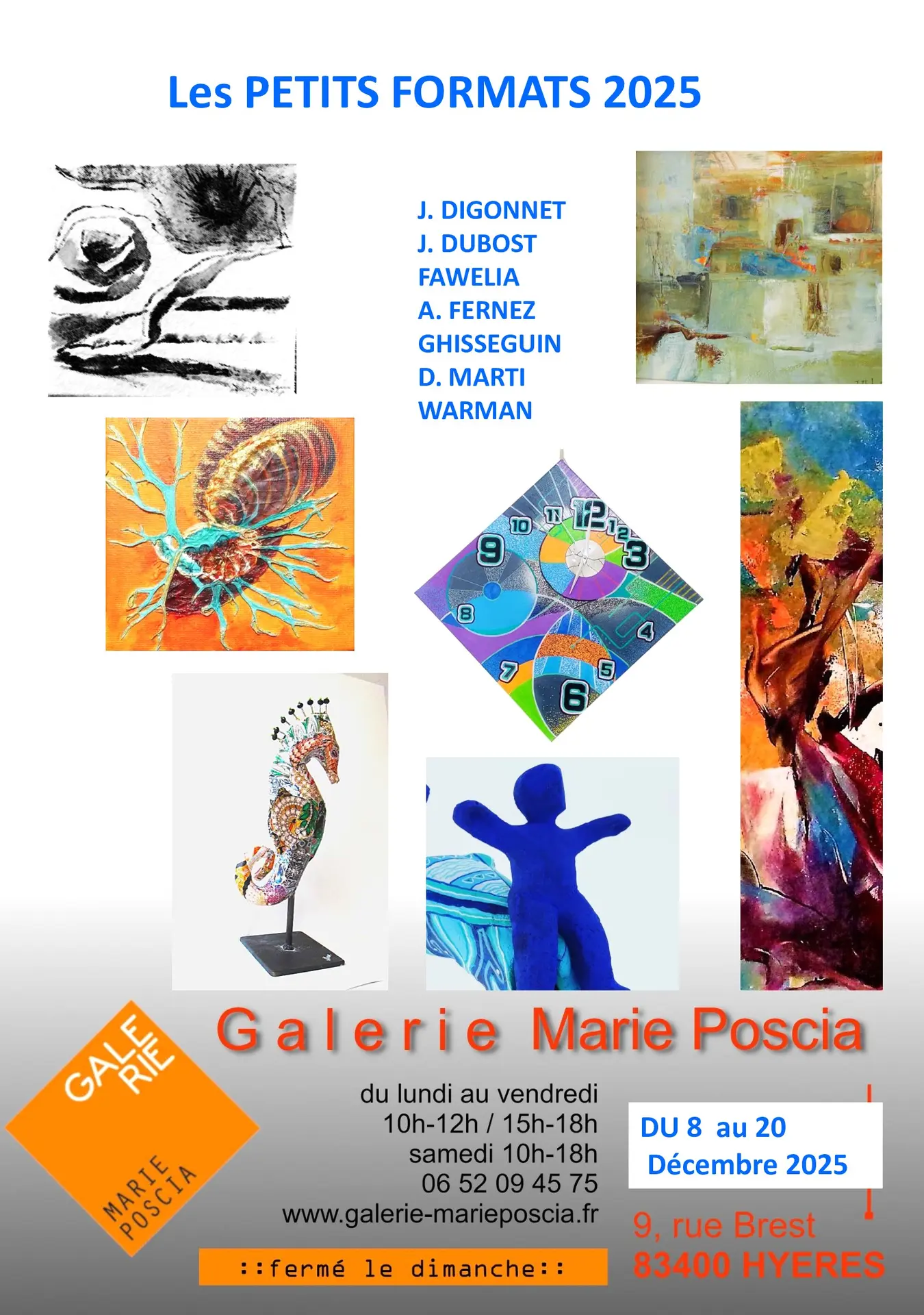 Peinture, sculpture, gravure et dessins sont présentés en petits formats par 7 artistes du collectif e la Galerie Marie Poscia du 8 au 20 décembre.