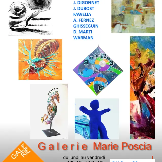 Cette exposition qui clôture l'année dans la Galerie Marie Poscia, propose un éventail d'œuvres, de la peinture à la gravure, en passant par la sculpture, des petits formats qui s'intègrent facilement dans un intérieur, colorent un espace, apportent de la joie et de la poésie.