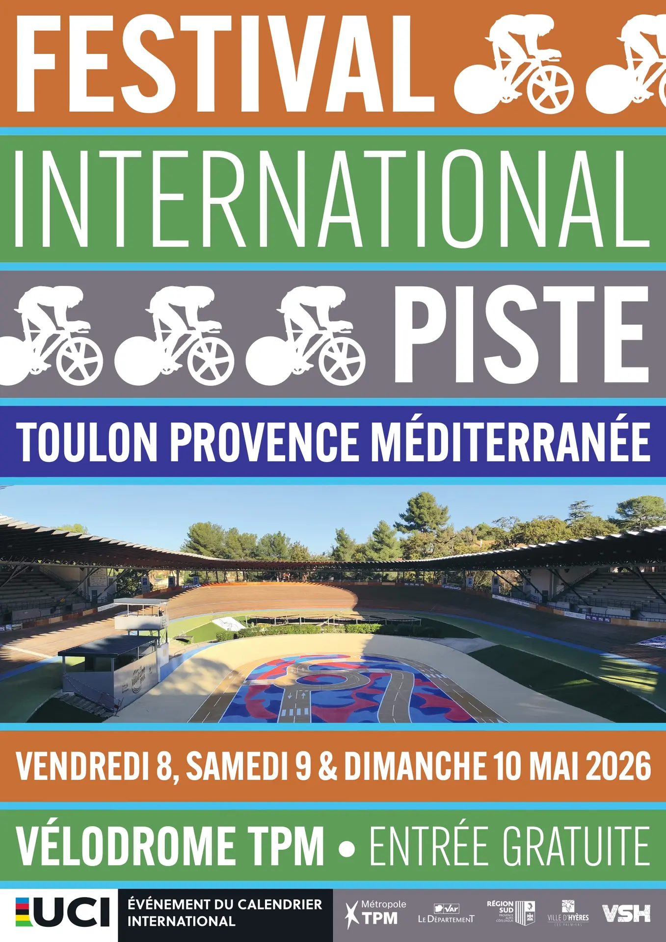 Le vendredi 8, samedi 9 et dimanche 10 mai 2026 aura lieu sur le Vélodrome de TPM d'Hyères le Festival International de vélo sur piste. Une centaine de participants de plusieurs nations seront accueillis.