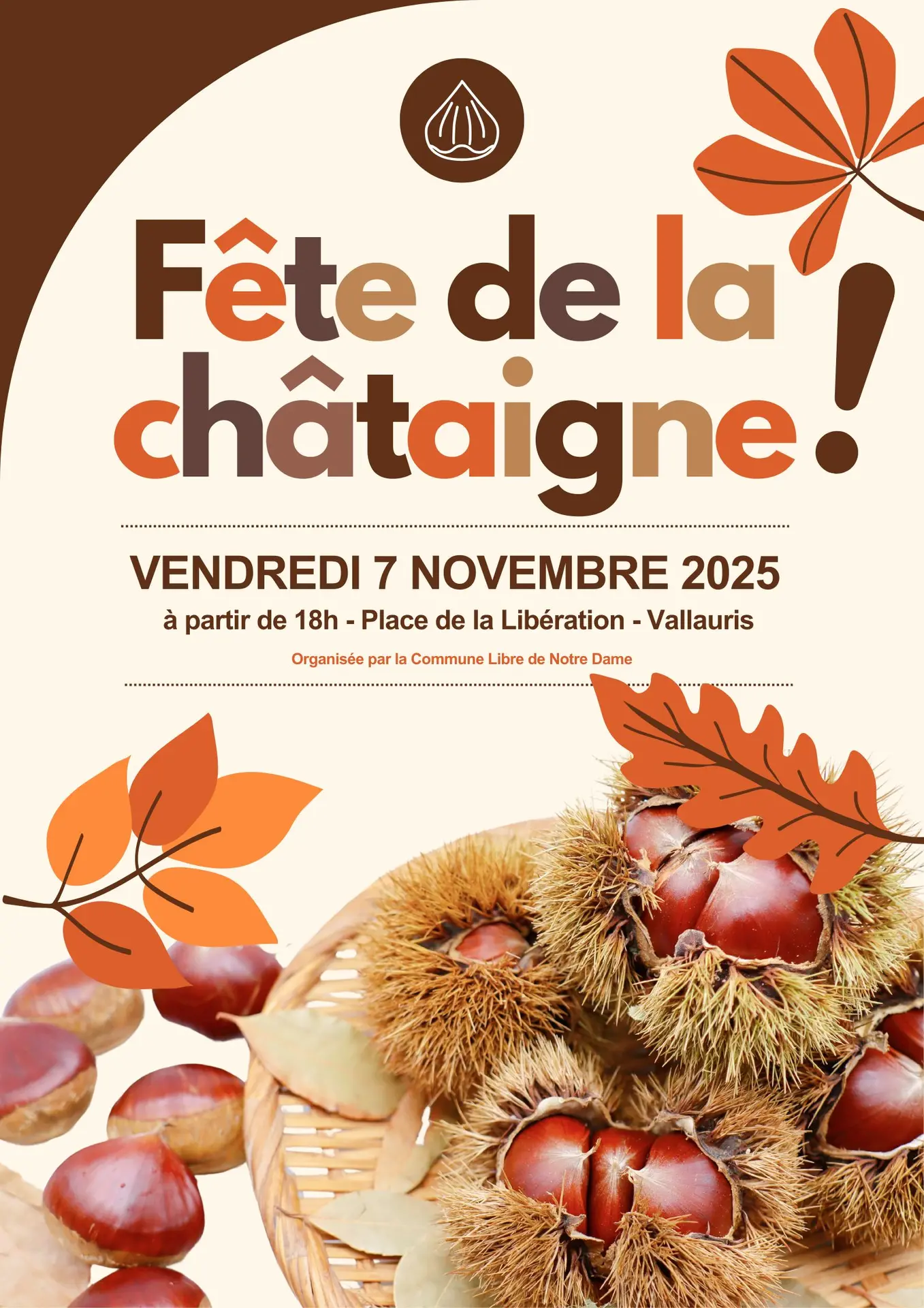 Venez partager un moment de convivialité autour des saveurs automnales : châtaignes grillées et verre de vin chaud offert à tous. (L'abus d'alcool est dangereux pour la santé, à consommer avec modération.)