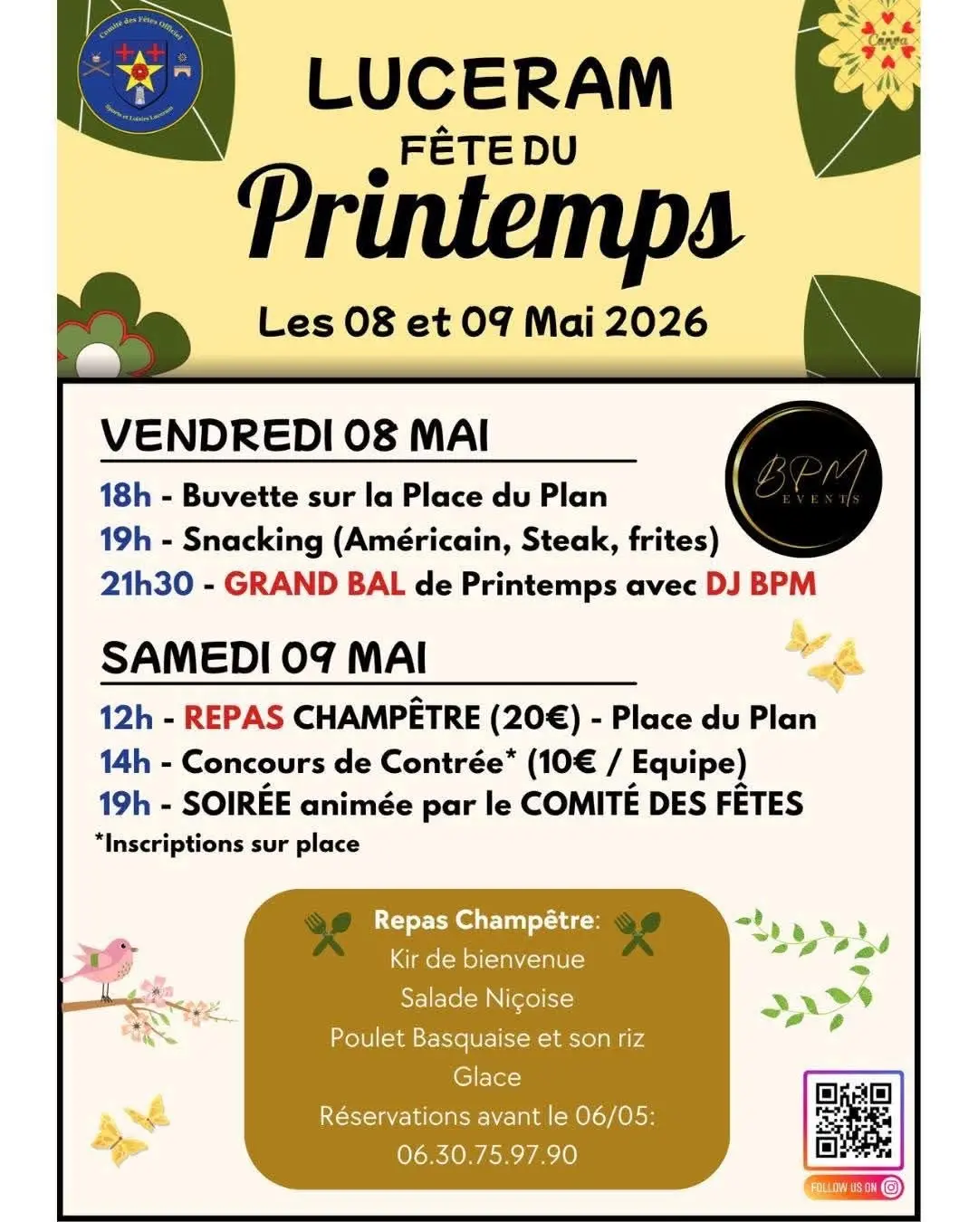 Réservation au 06 30 75 97 90 avant le 06/05/2026