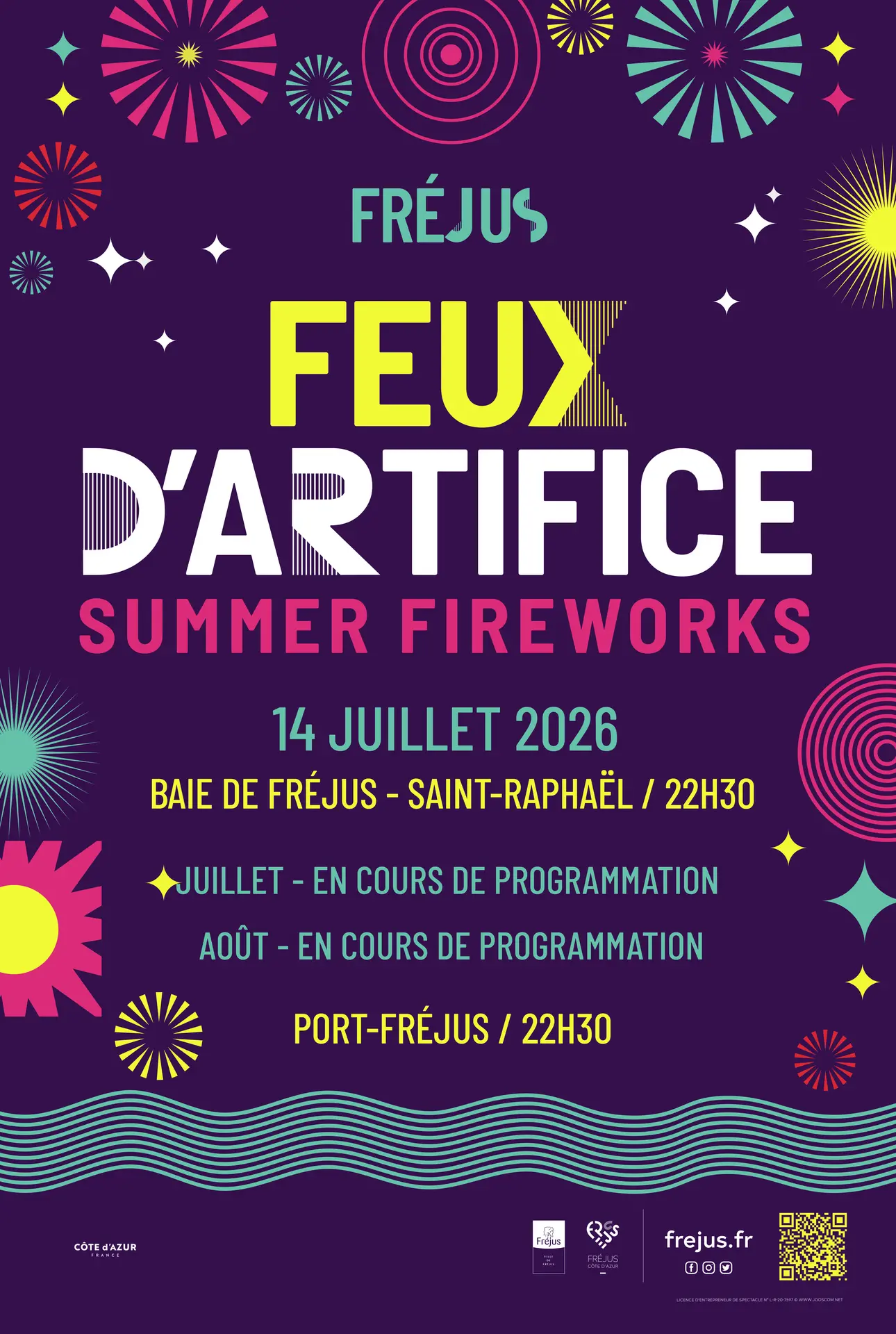 Tirés au large de la baie de Fréjus / Saint-Raphaël, vous pourrez les admirer depuis les quais de Port-Fréjus, ou bien même depuis Fréjus-Plage (où vous pourrez flâner sur le marché nocturne).