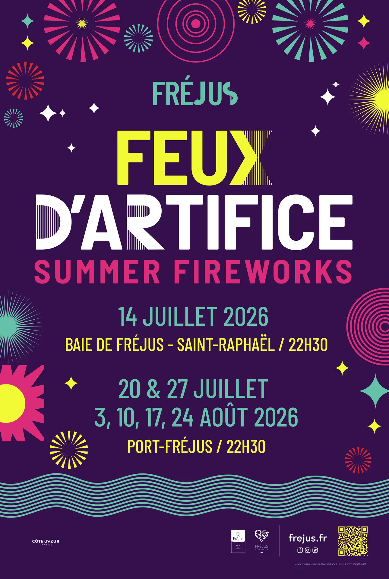 Tirés au large de Port-Fréjus, vous pourrez les admirer depuis les quais, ou bien même depuis Fréjus-Plage (où vous pourrez flâner sur le marché nocturne), la Base Nature et même Saint-Aygulf !