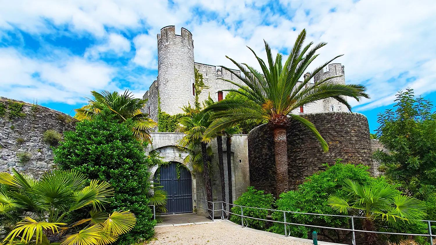 Remparts et chemins de ronde sont ponctués de cinq tours rondes, et d’un pont-levis médiéval. François 1er y a séjourné en 1538, afin de signer la Trêve de Nice avec Charles Quint, pacte qui mettait fin aux guerres d’Italie. Lors de la visite guidée, vous emprunterez une partie du parc, écrin d’espèces exotiques et méditerranéennes. Puis, passant le pont- levis, vous ferez une halte au pied du donjon avant d’accéder au chemin de ronde qui offre un panorama exceptionnel. La visite se termine dans l’atmosphère magique de la cour intérieure. Dates de visite sur demande auprès de l'Office de Tourisme.