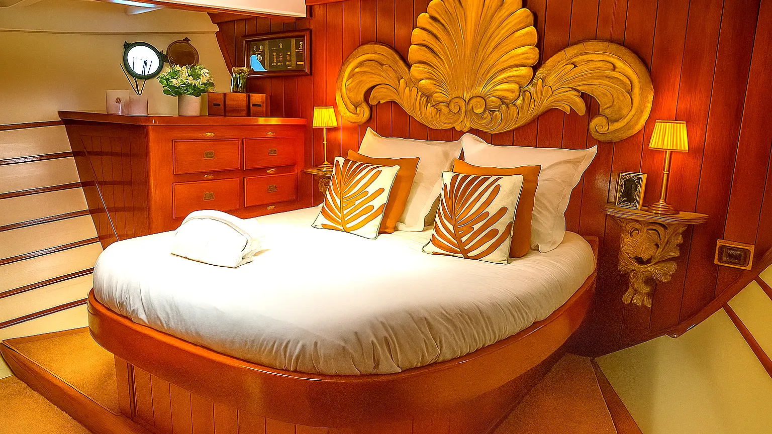 Bienvenue à bord du O’REMINGTON, un yacht mythique pensé pour ceux qui souhaitent célébrer l’exceptionnel, dans un écrin d’histoire et de raffinement absolu. Cette majestueuse goélette a vu défiler les icônes du cinéma italien —Visconti, Mastroianni… Sa cabine principale, décorée par Federico Fellini, conserve le charme intact d’un art de vivre disparu.