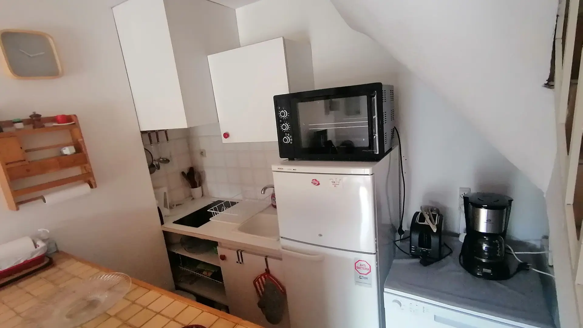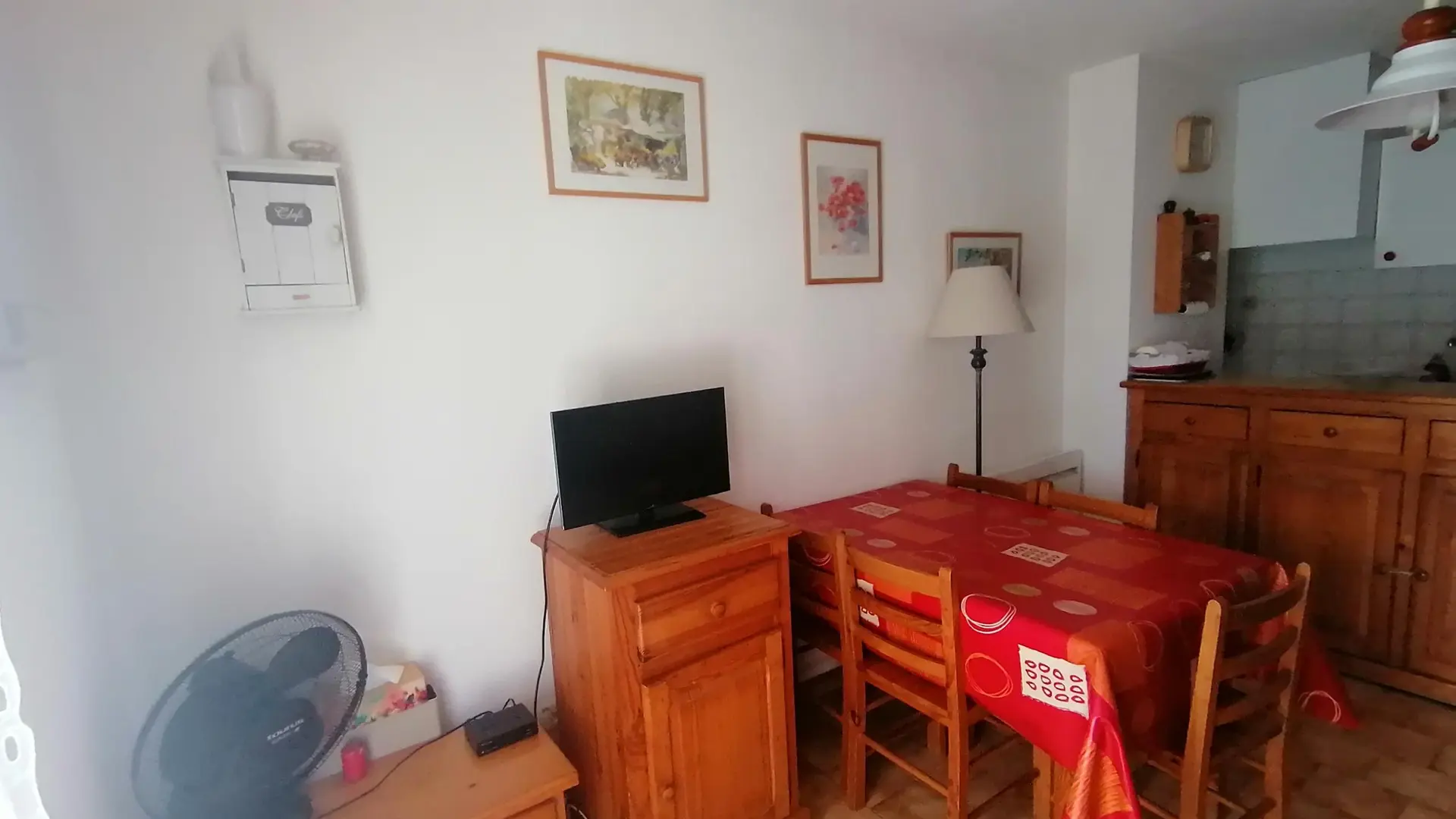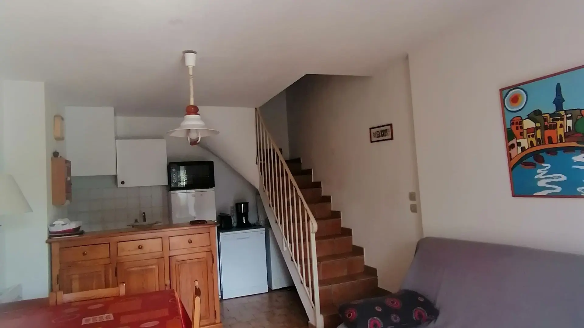 Rez-de-chaussée avec une pièce à vivre bien aménagée. Premier étage avec chambre, salle de bain et wc indépendant.