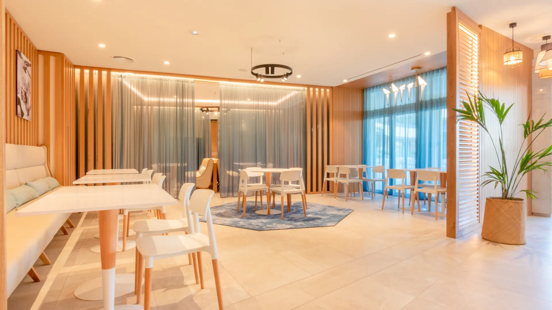 Dès l'arrivée, le lobby de l’hôtel accueille les visiteurs dans une ambiance cosy et chaleureuse. Ils profitent du calme et de la tranquillité de l’une des 124 chambres, dont la plupart possèdent une terrasse privative vue montagne, jardin méditerranéen ou mer.