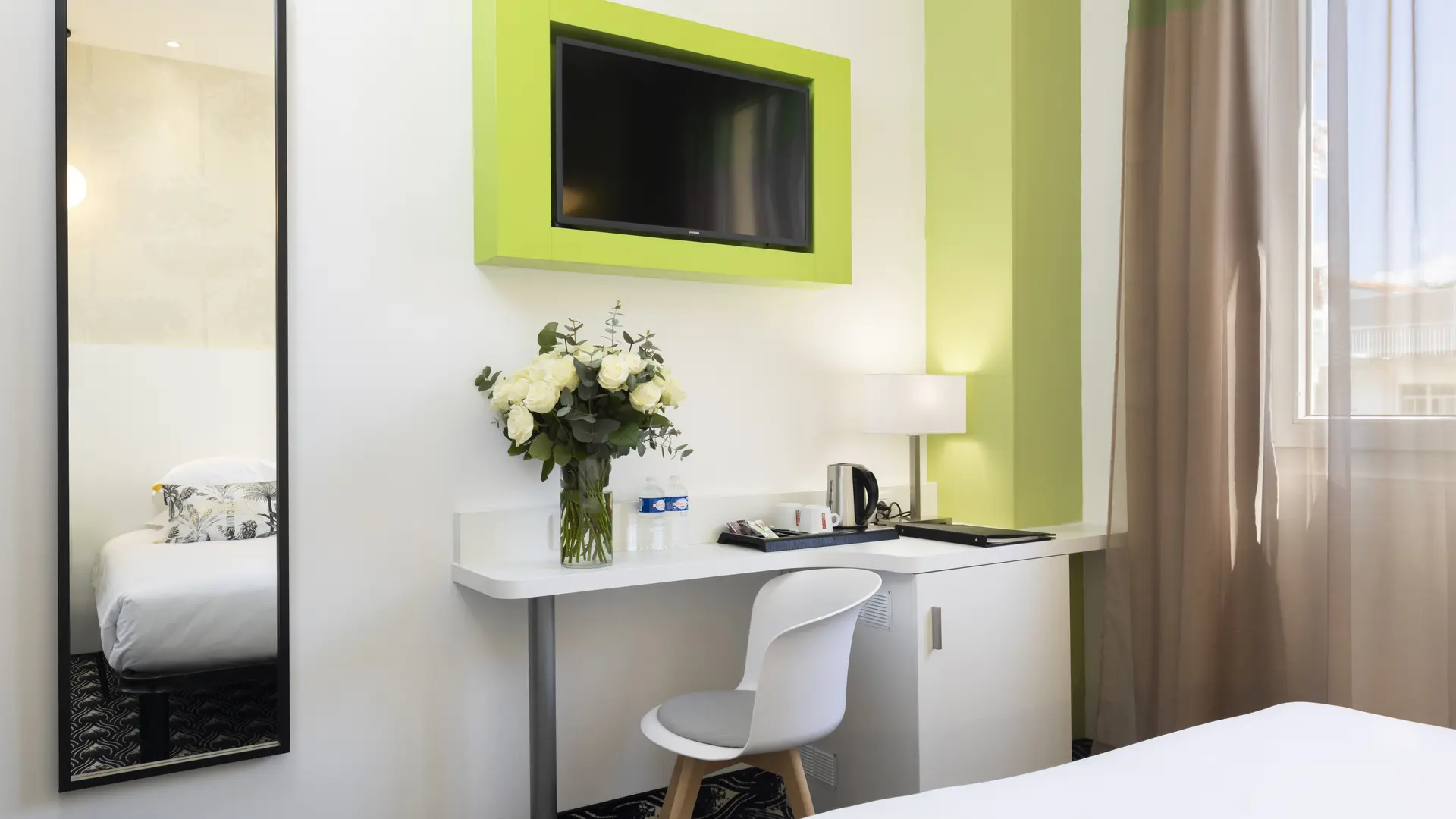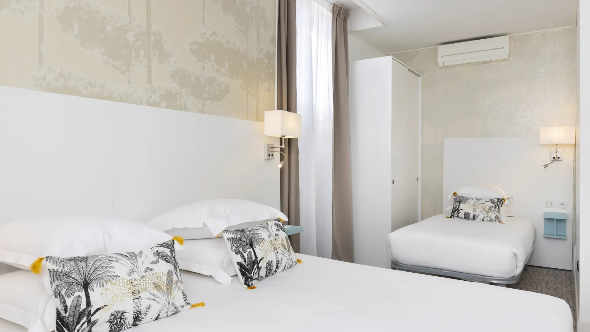 L'hôtel, rénové en 2021, propose 64 chambres de grand confort climatisées, insonorisées et de salles de bain équipées. A disposition également un rooftop pour un petit déjeuner ou un rafraîchissement à tout moment de la journée. Toute l' équipe est disponible, afin de répondre à vos demandes et vous faire passer un agréable séjour.