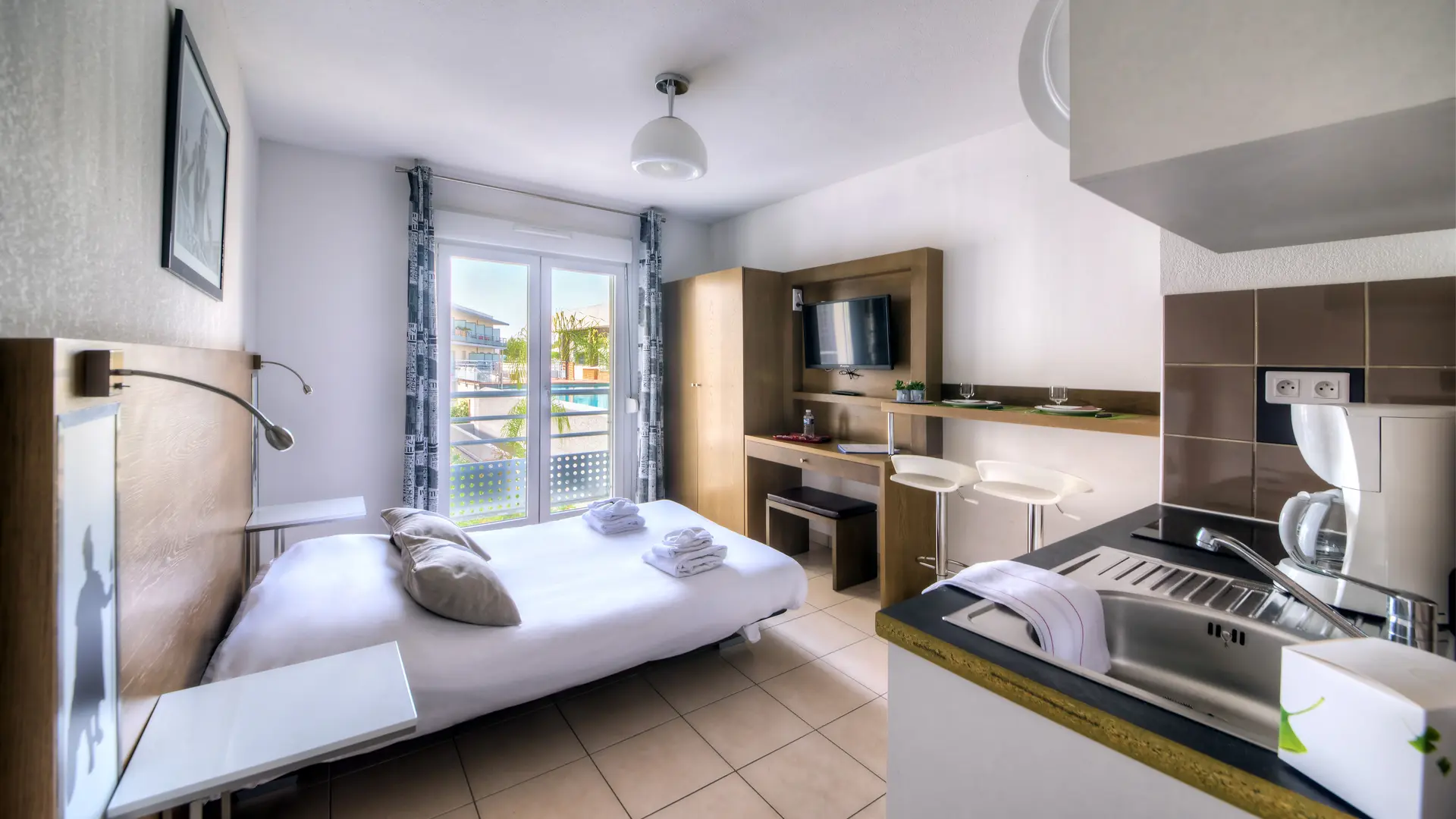 Idéalement située entre mer et montagne, deuxième ville des Alpes-Maritimes, Antibes Juan-les-Pins est une cité à vocation touristique où se mêlent traditions et plaisirs nautiques, histoire et patrimoine, festivals et vie nocturne. L’hôtel-résidence propose des chambres double et studios, avec ou sans balcon.