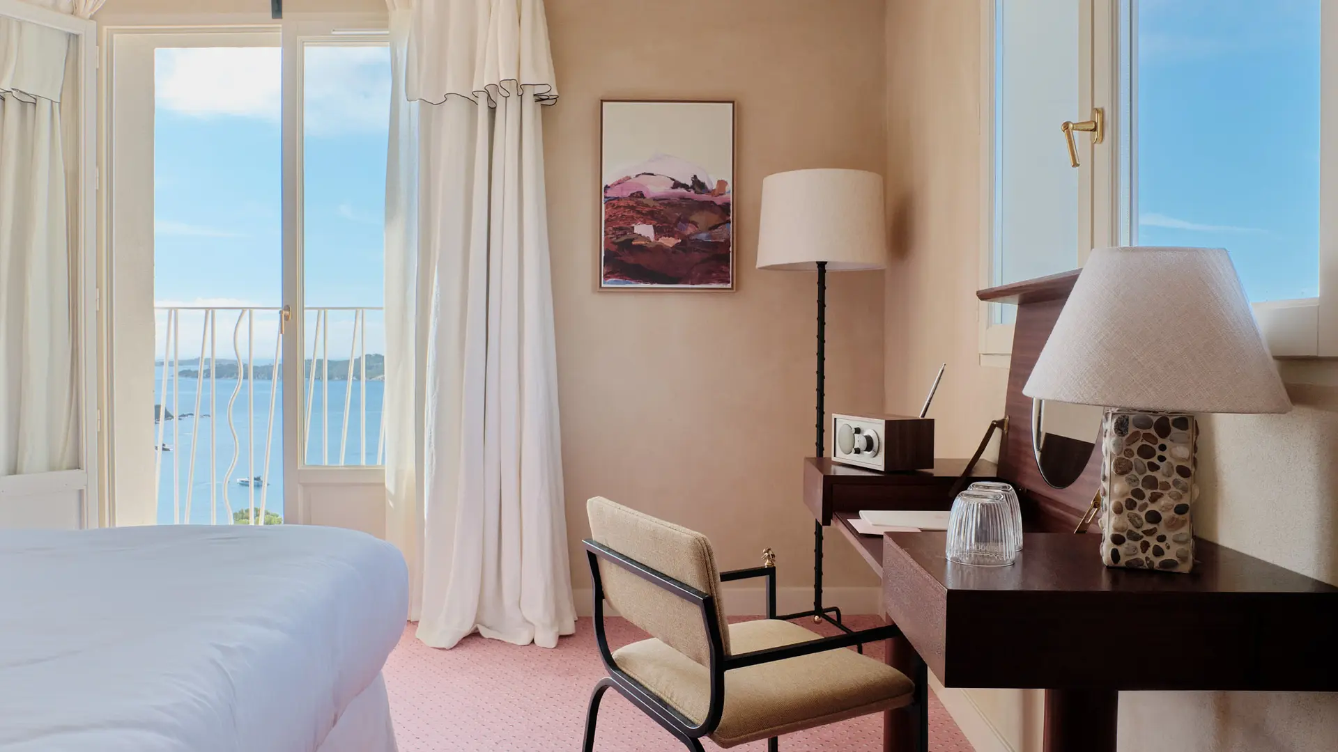 Les 26 chambres et 4 suites offrent des vues exceptionnelles sur le village, la mer et la pinède. Lumineuses et sereines, elles allient confort raffiné et détails colorés, faisant de chaque séjour un moment unique pour se reposer, rêver et profiter du charme du Var.