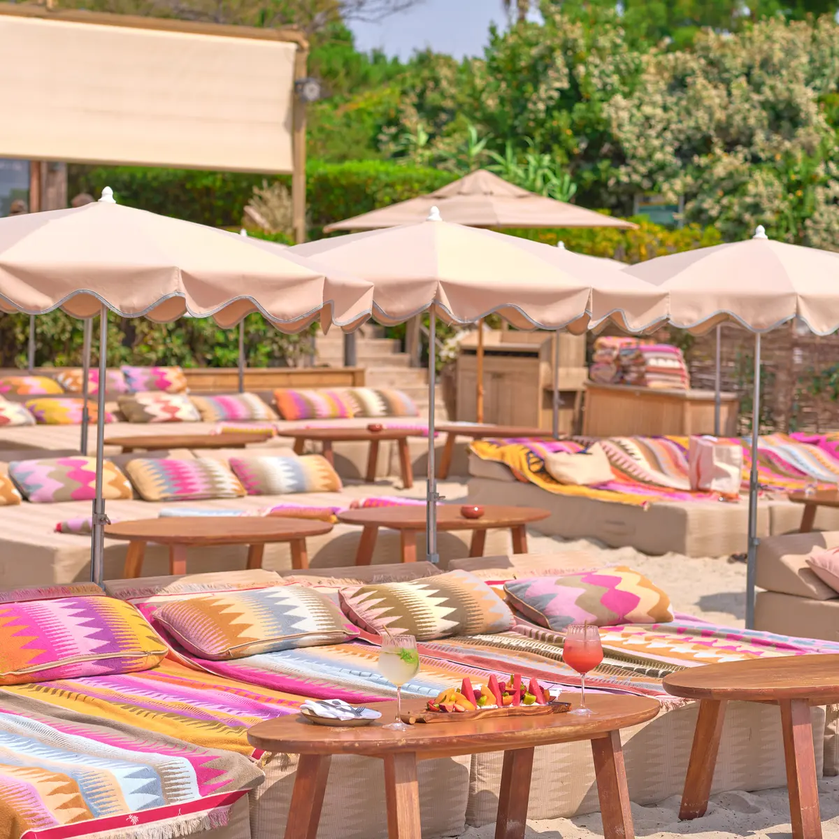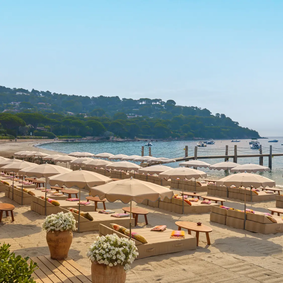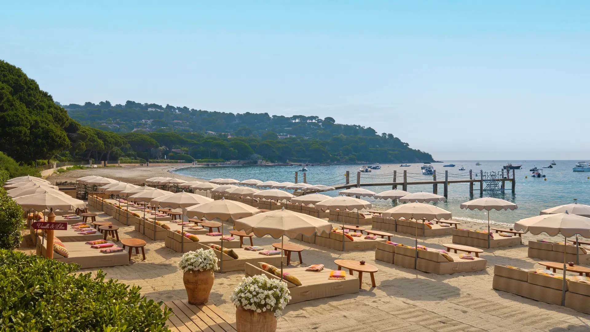 Jardin Tropézina est une plage idéalement située, facile d'accès, dans un cadre enchanteur par son environnement boisé et une vue à couper le souffle sur la baie de Pampelonne.