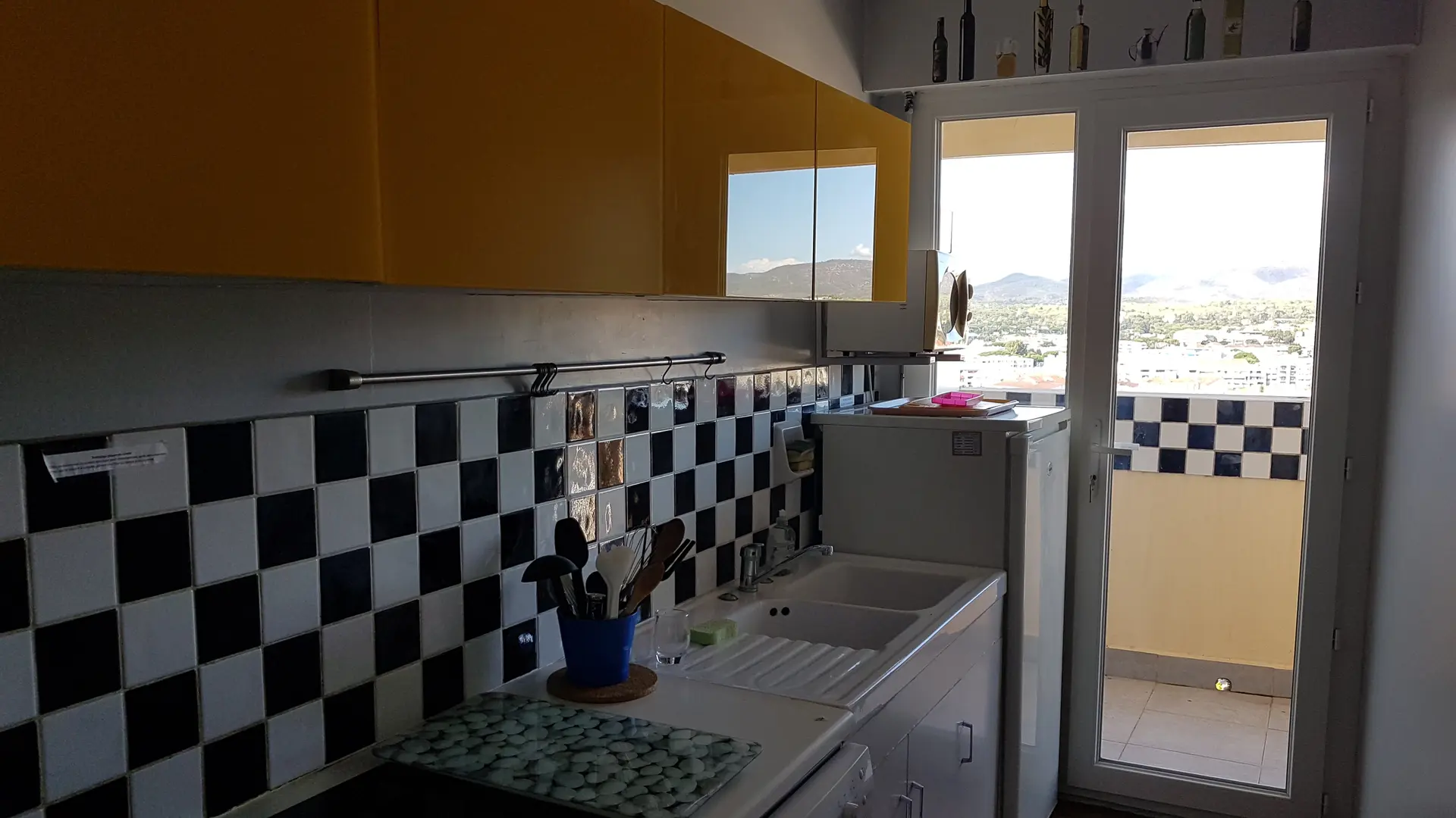 • Petit patio (idéal pour étendre le linge) avec vue sur St Raphaël et l’Esterel,