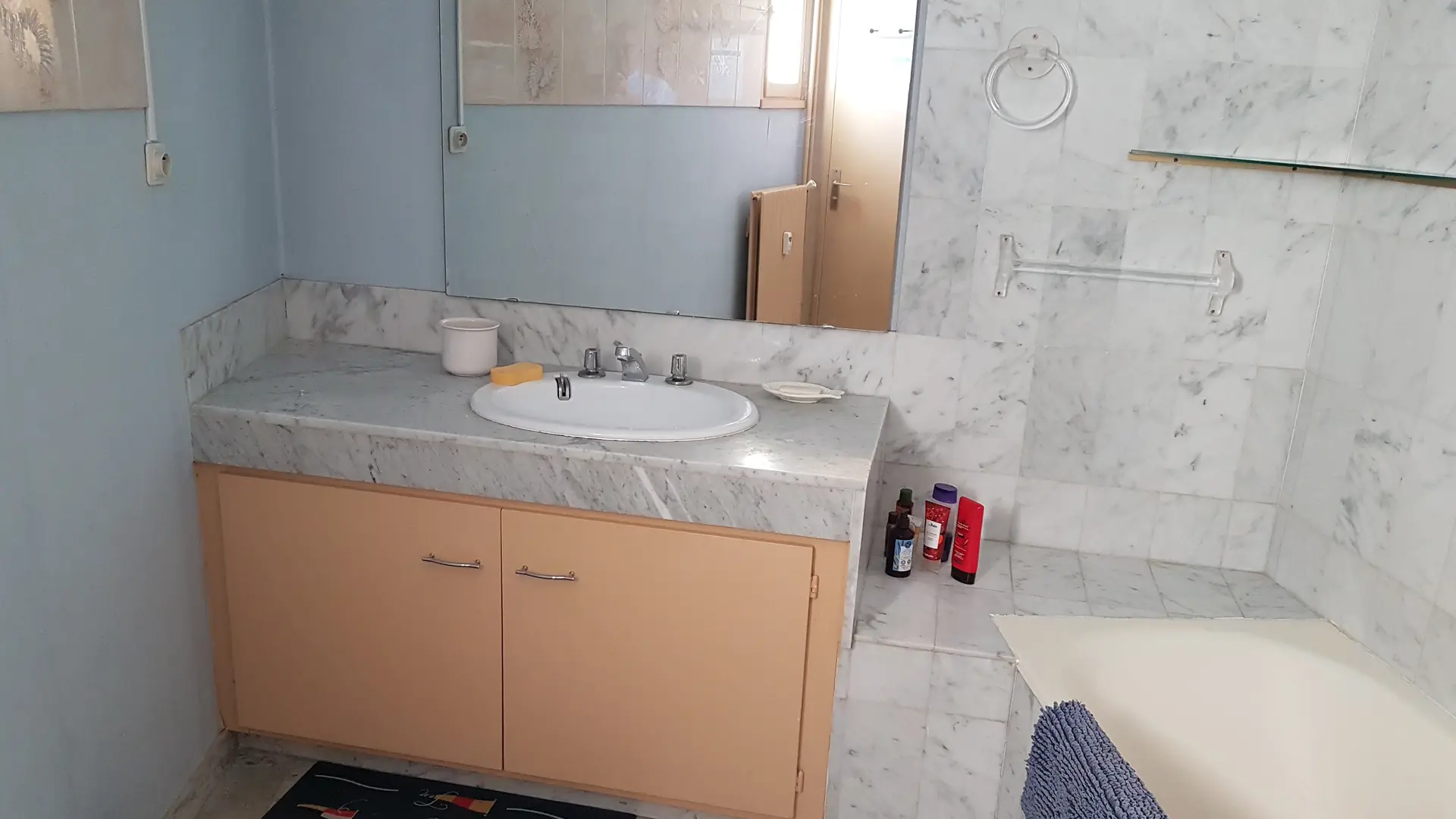 • Une grande salle de bain, avec baignoire et machine à laver, sèche cheveux.