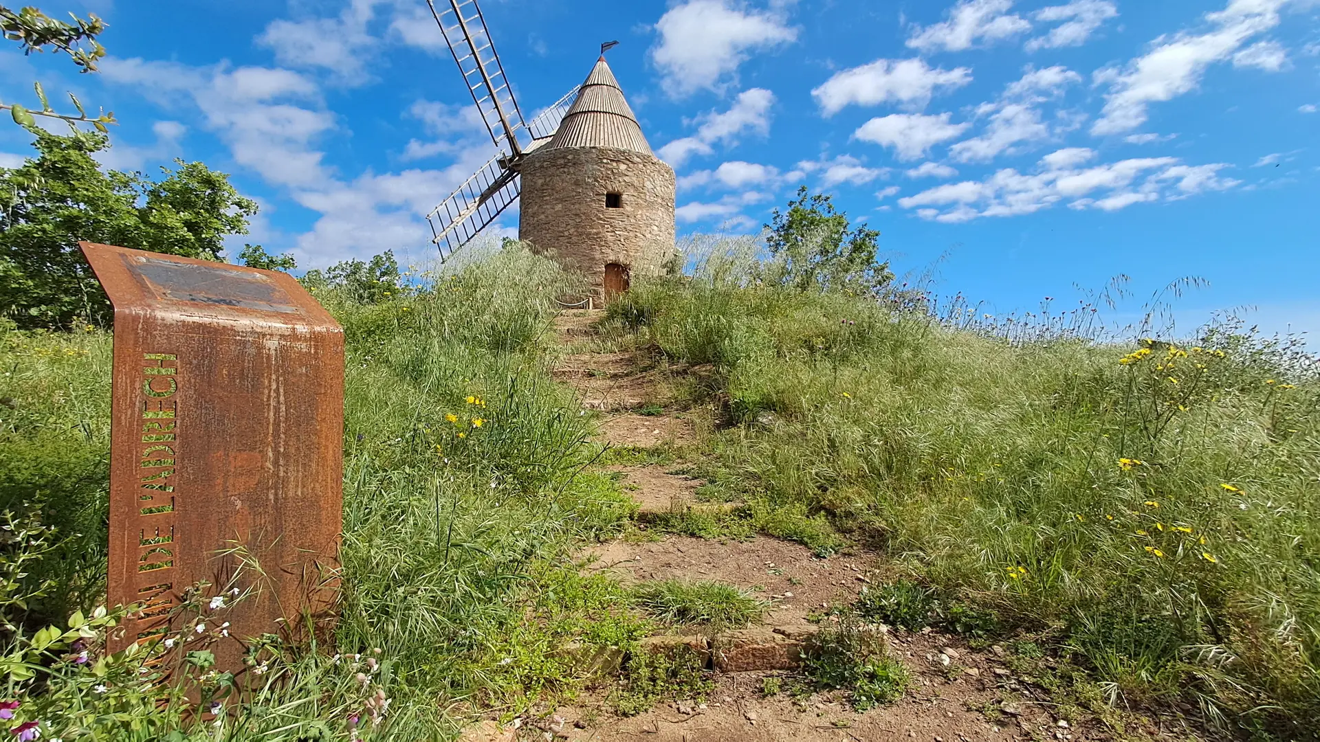 en lacets à flanc de colline.Arrivé sur la crête, vous apercevez la tour du moulin