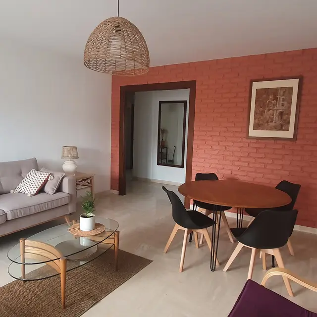 * Séjour comprenant un espace salon - salle à manger avec un balcon attenant équipé de mobilier de jardin (côté sud). * Cuisine indépendante avec balcon (côté nord). * Chambre climatisée comprenant 1 lit double (140 x 190 cm) ouvrant sur loggia. * Salle de bains (baignoire)
