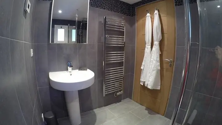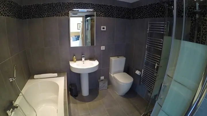 Chambre bleue : 2 pers. - 1 lit 2 places (200 x 200 - possibilité twin) - Salle de bain et toilettes privés dans la chambre.