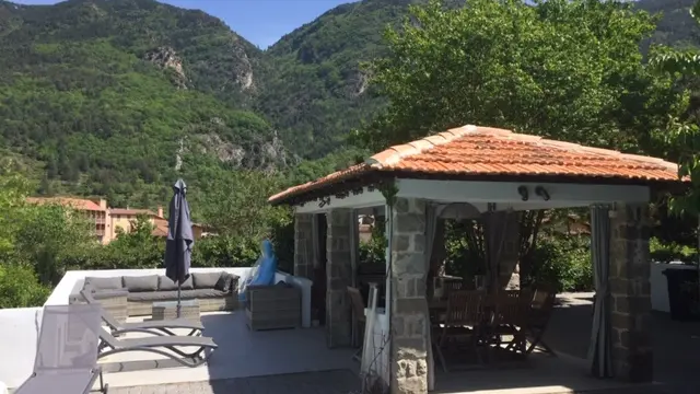 Située au calme, à l'extérieur du village, cette chambre d'hôtes de luxe a une vue imprenable sur le village et les montagnes, à proximité des chemins de randonnées.