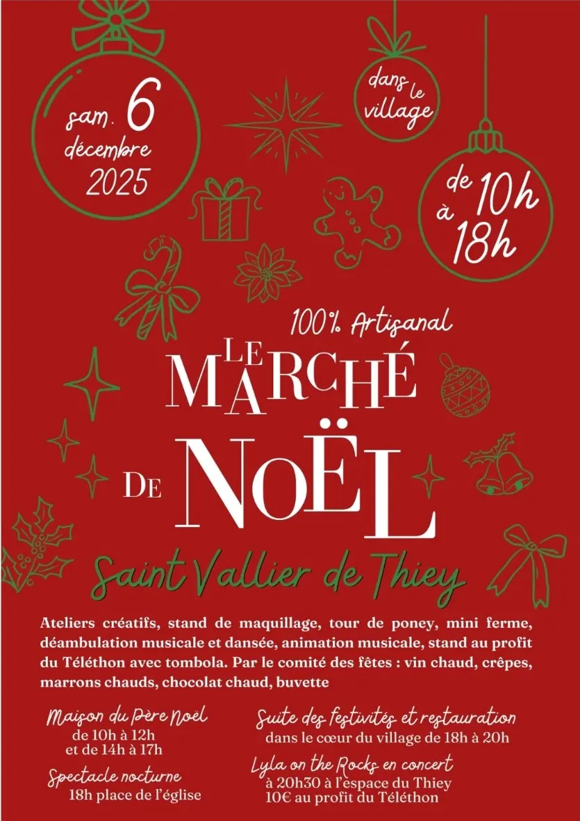 Samedi 06 décembre dans le coeur du village de Saint-Vallier-de-Thiey, venez vivre la magie de Noël lors d’une journée 100 % artisanale et festive organisée par le Comité des Fêtes !