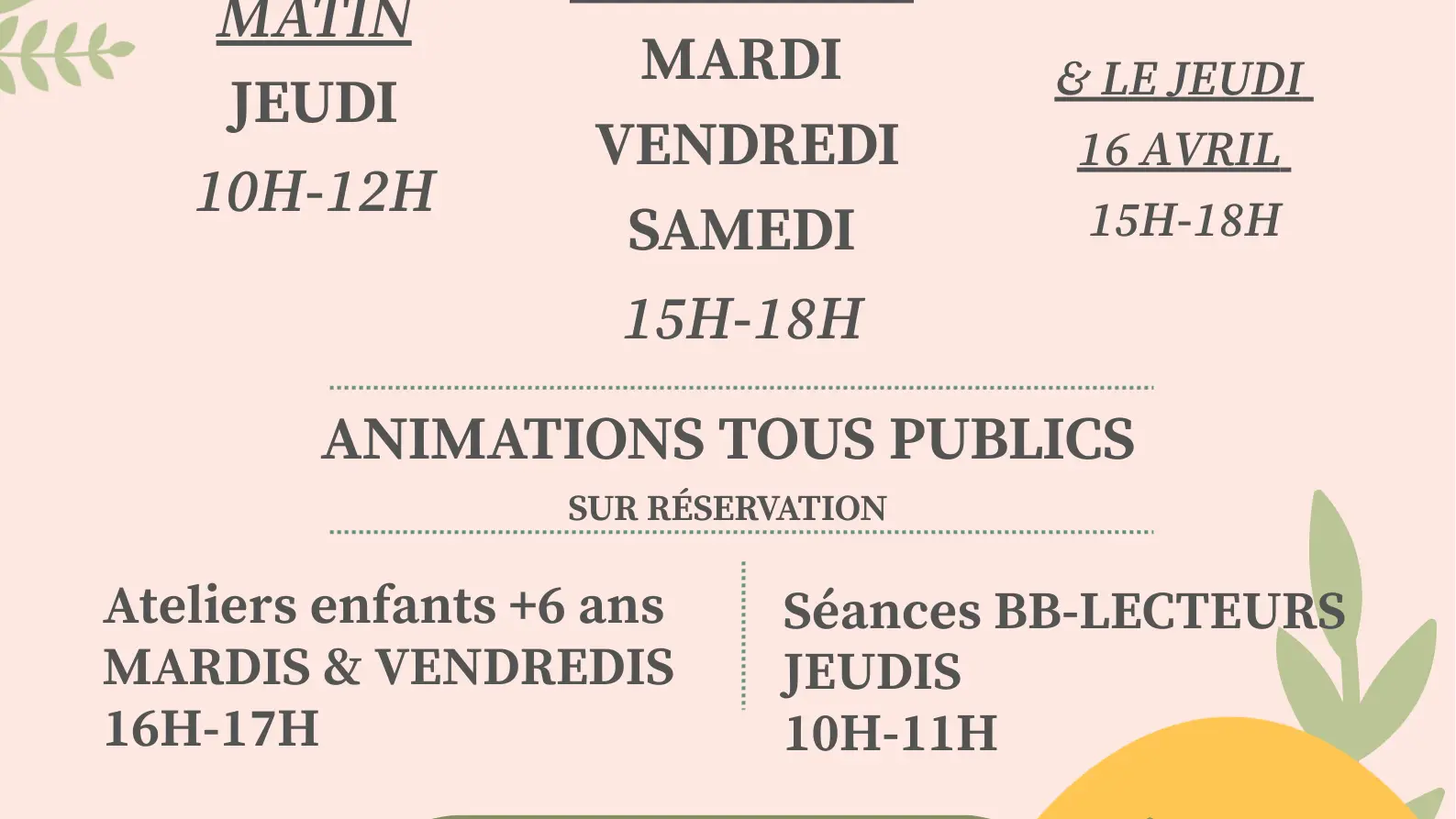 Jeudi de 10h à 12h + jeudi 16/04 de 15h à 18h