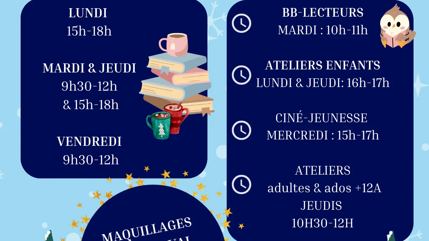 Lundi, mardi et jeudi : 15h – 18h