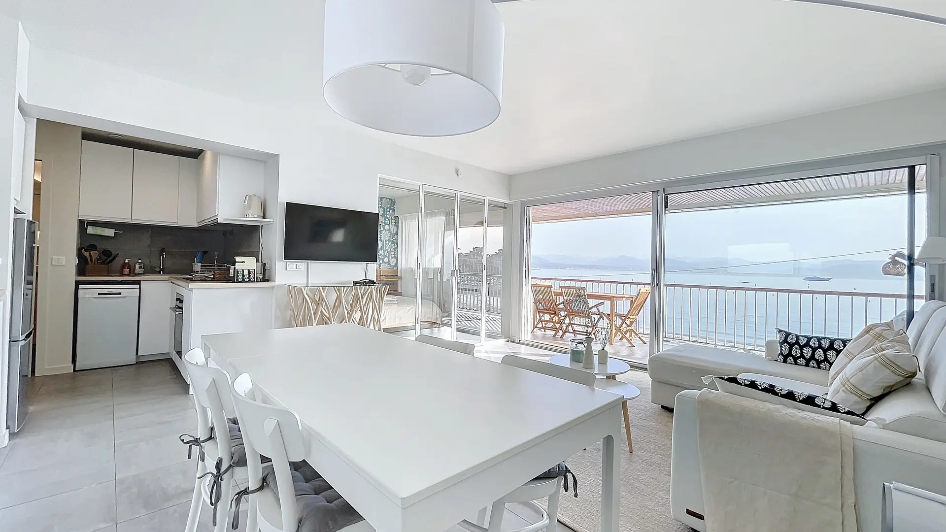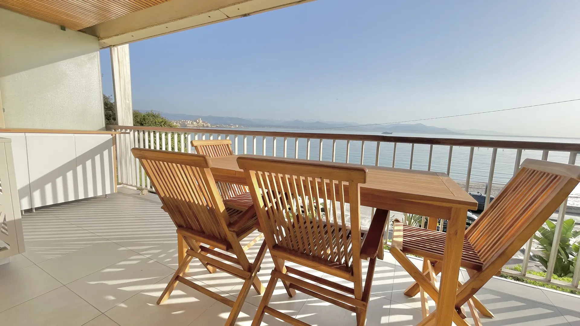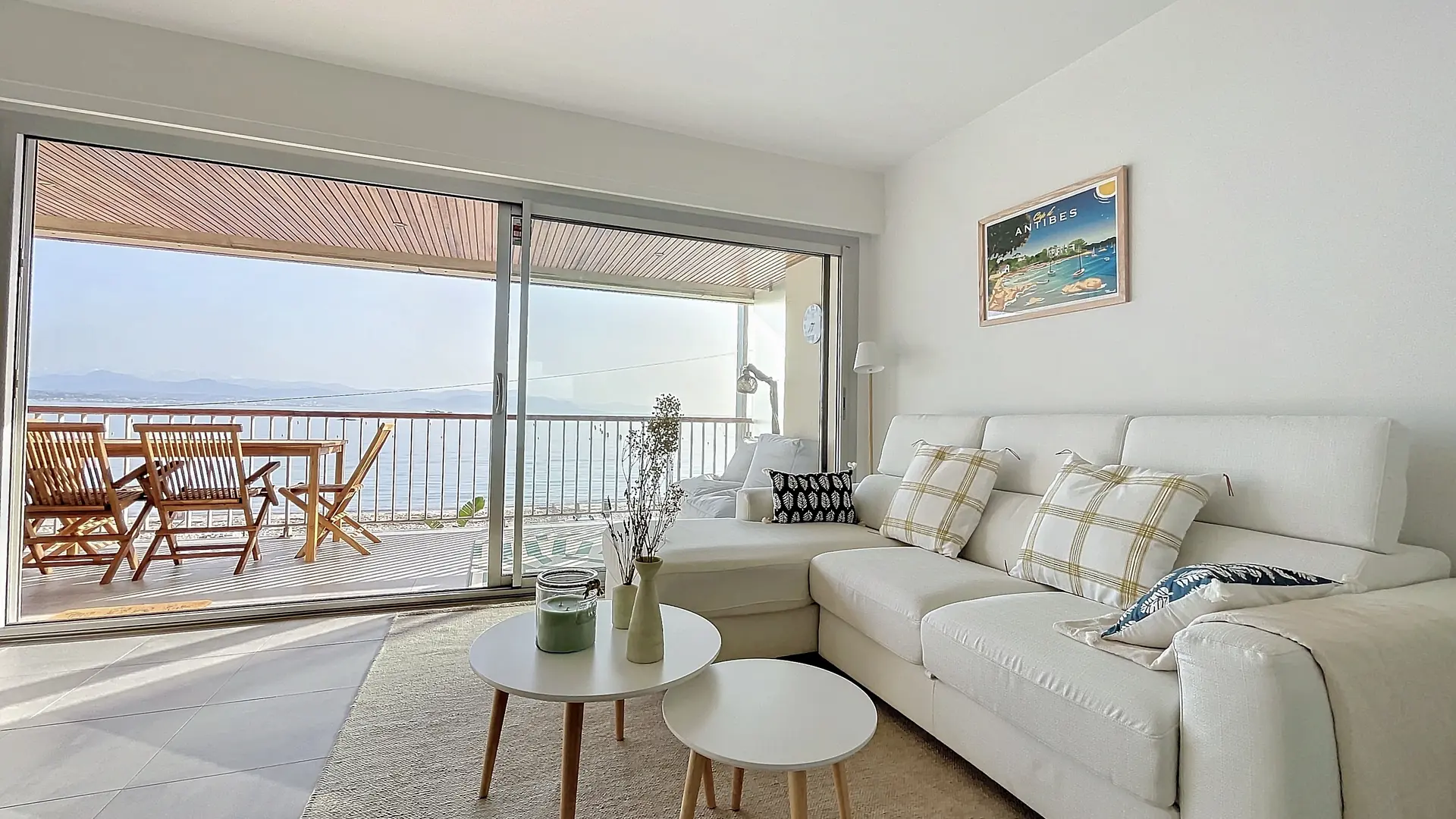 Le Nid du Cap est un appartement de deux pièces doté d'une large terrasse de 17 m² surplombant la plage de la Salis, à Antibes. Il offre une vue mer exceptionnelle du Cap d'Antibes jusqu'à Nice avec les montagnes du Mercantour en arrière-plan.