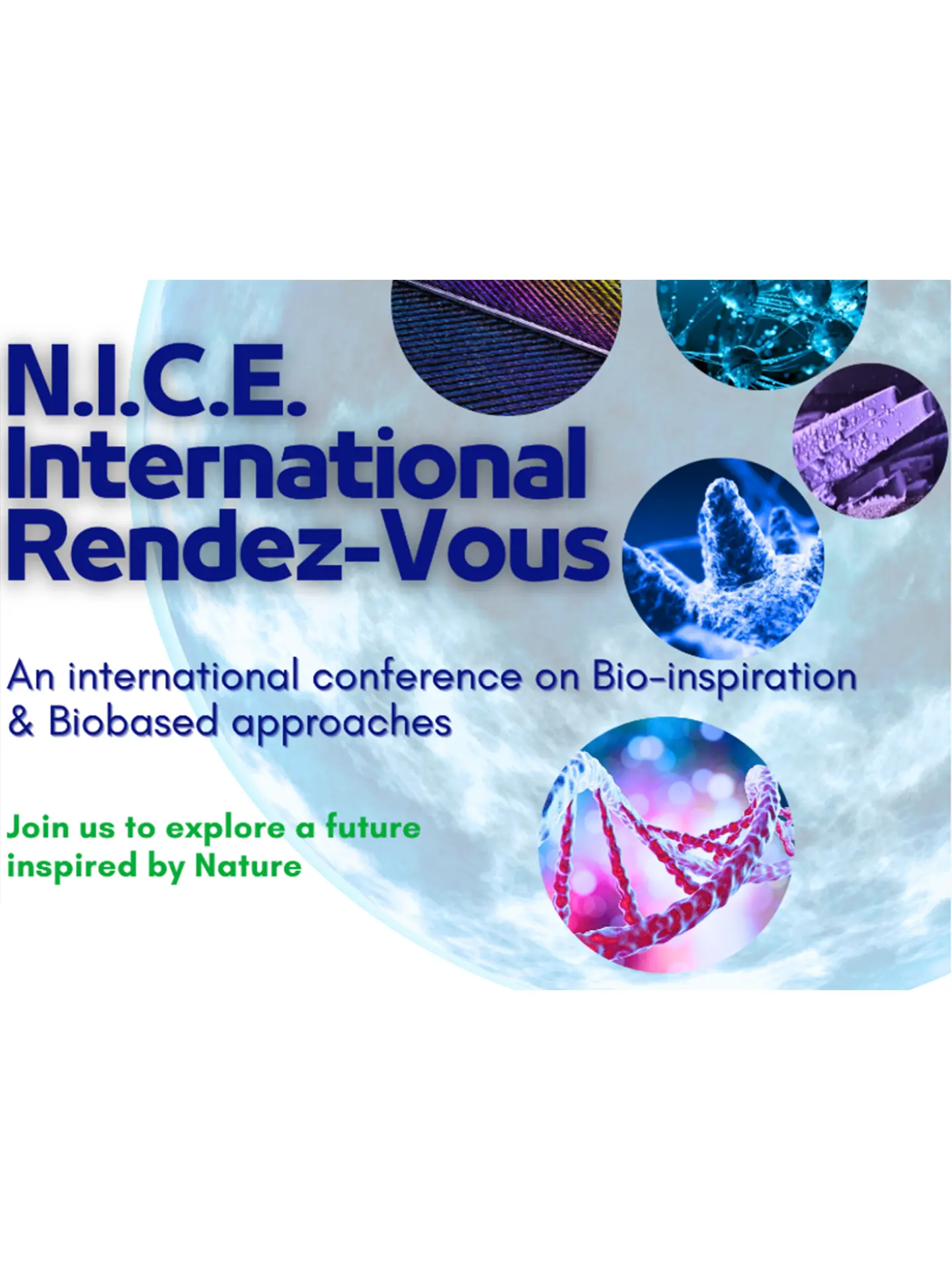 Les Rendez-Vous internationaux N.I.C.E. sont organisés dans le but de faire progresser et de partager les dernières avancées dans le domaine dynamique de la bio-inspiration et des approches bio-sourcées (depuis 2012), tout en relevant les nouveaux défis scientifiques et sociétaux grâce à des solutions innovantes et durables. Le programme scientifique concerne toutes les disciplines dans le domaine des matériaux et des nouvelles énergies, il couvre 3 thèmes généraux : NanoTech, BioTech, SmartTech