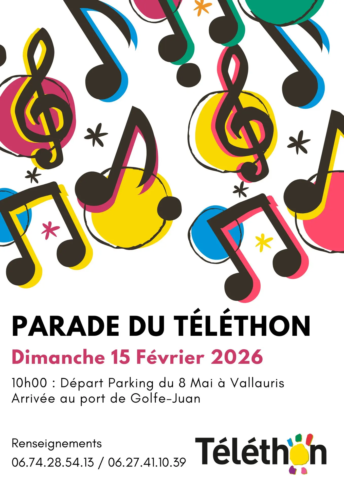 Venez partager un moment festif et solidaire lors de la Parade du Téléthon entre Vallauris et Golfe-Juan ! Rendez-vous le dimanche 15 février 2026 pour un défilé haut en couleurs au profit d’une belle cause.
