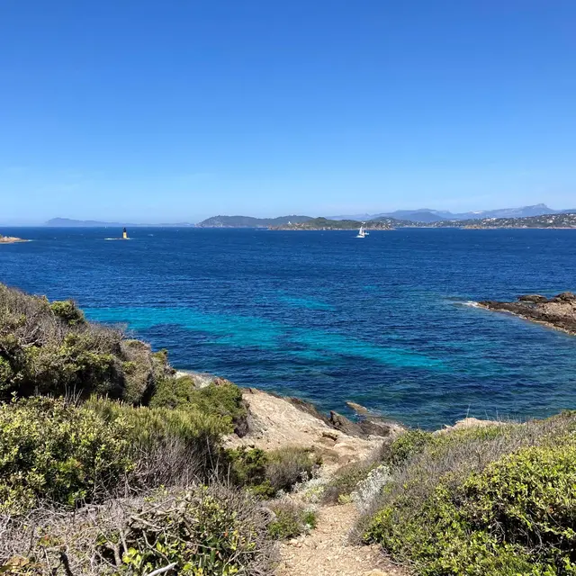 Ce circuit vous emmènera jusqu'au Langoustier, coin paradisiaque au bout de l'île, avec sa plage noire. Vous y découvrirez une végétation changeante entre le littoral, le maquis et la grande allée de pins parasols.