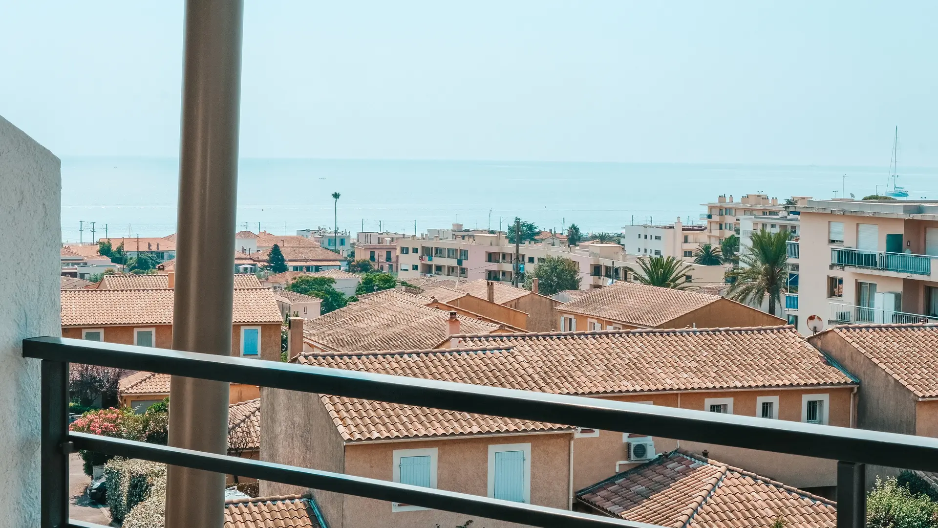 Niché sur les hauteurs d'Antibes, la résidence surplombe la Baie des Anges et bénéficie d'une vue imprenable sur les eaux bleues de la mer méditerranée et le massif des Alpes du Sud.