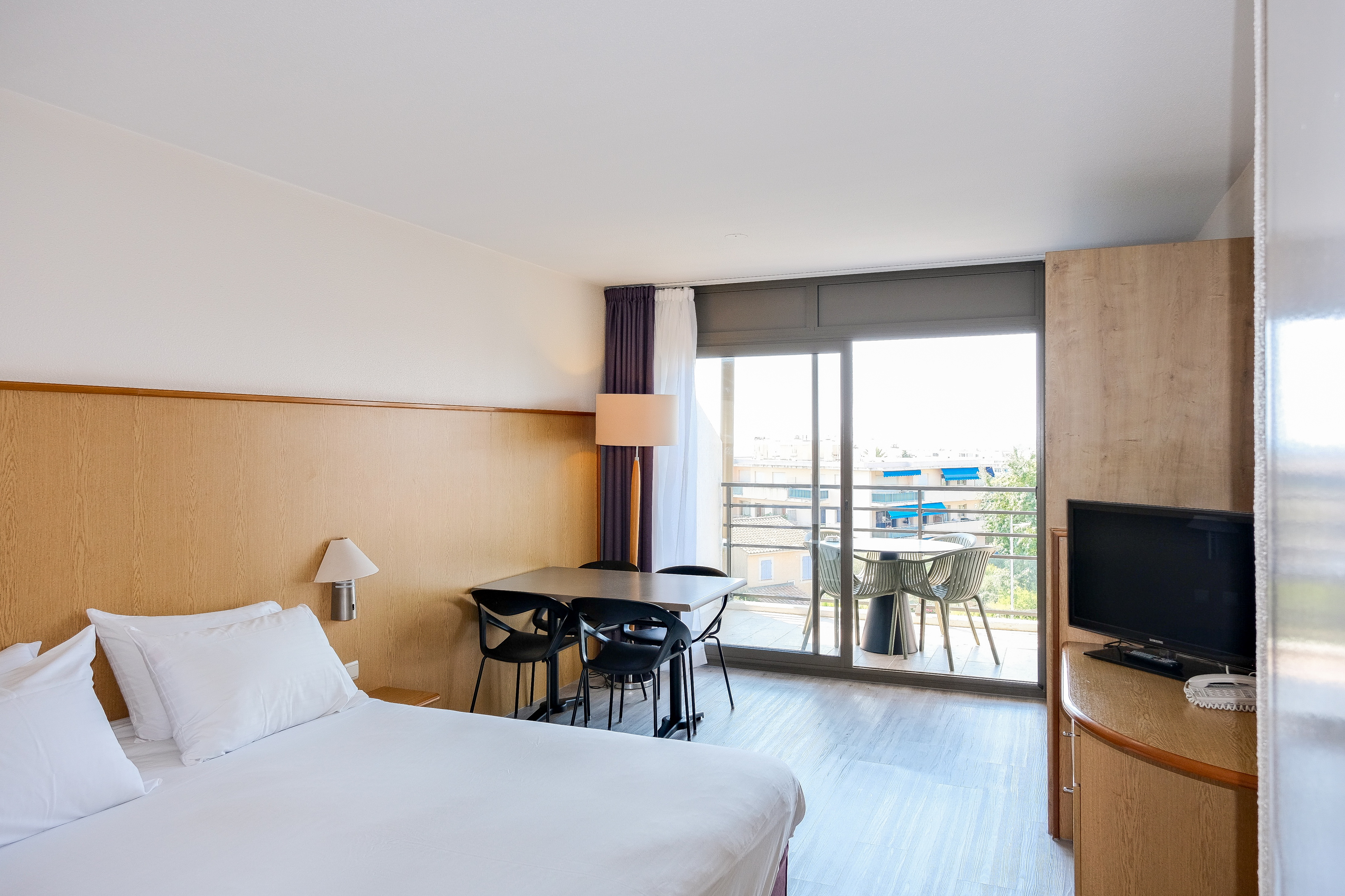 Intégré à l'institut de thalassothérapie et SPA, l'hôtel Baie des Anges, vous propose 164 chambres spacieuses et baignées de lumière. D'un style contemporain et de grand confort, toutes disposent d'une terrasse privative, climatisation, télévision écran plat, coffre fort, connexion wifi. Accès illimité à l'Espace Marin (Sauna, hammam, fitness, piscines intérieure et extérieure d'eau de mer).