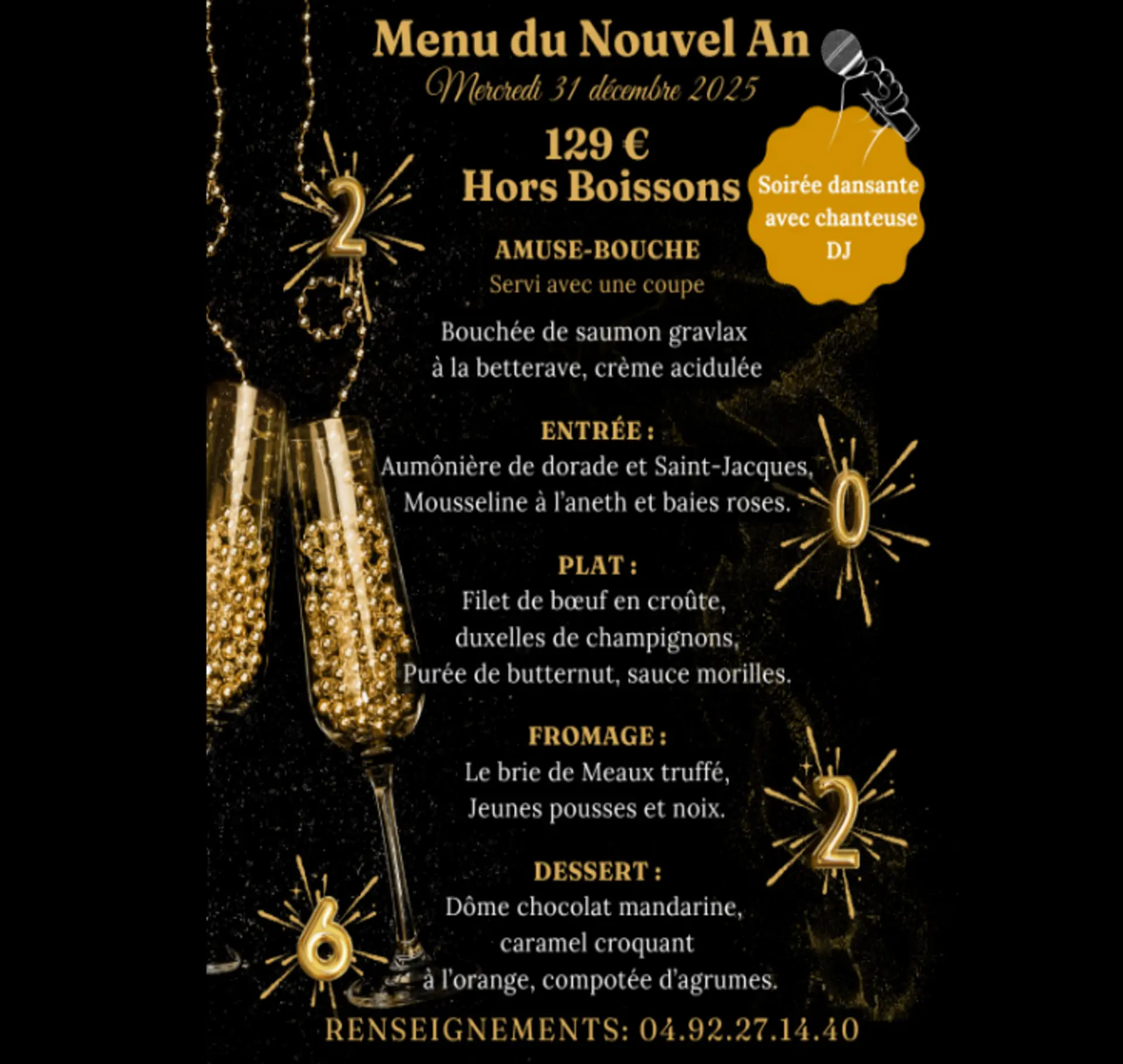 Le Casino Terrazur vous invite pour le réveillon de la Saint-Sylvestre avec chanteuse et Dj pour une soirée dansante.