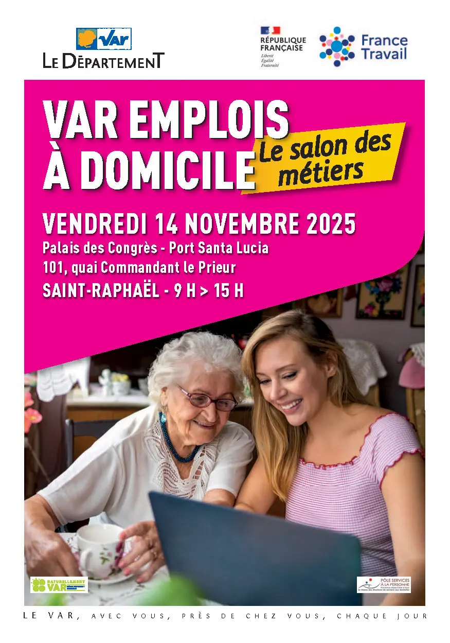 Le Conseil départemental du Var et France Travail organisent le salon Var Emplois à Domicile, dédié à la découverte des métiers des services autonomie à domicile.