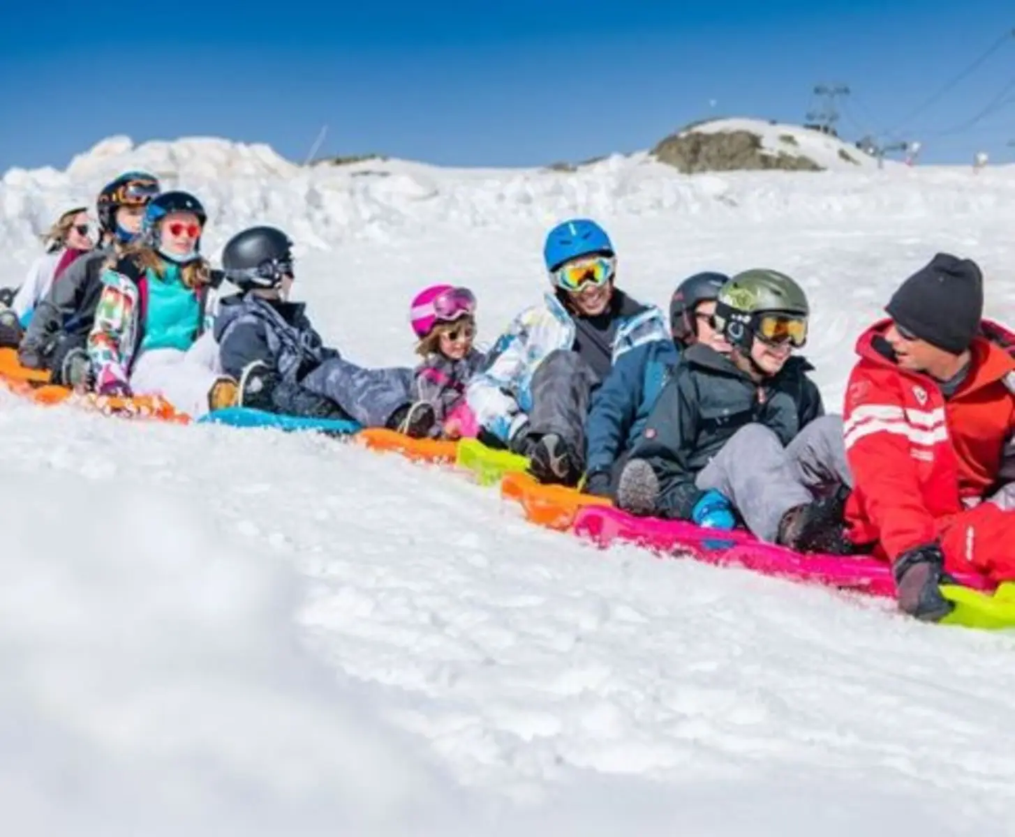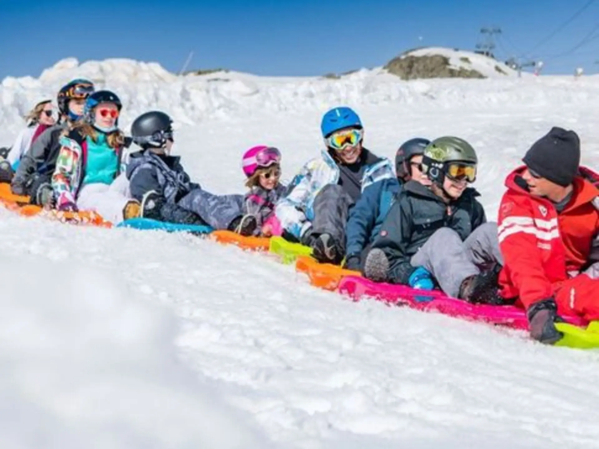 Descente sur des luges individuelles emboitées les unes dans les autres, activité à sensation, remontée de la piste en scooter des neiges, encadré par 1 moniteur.